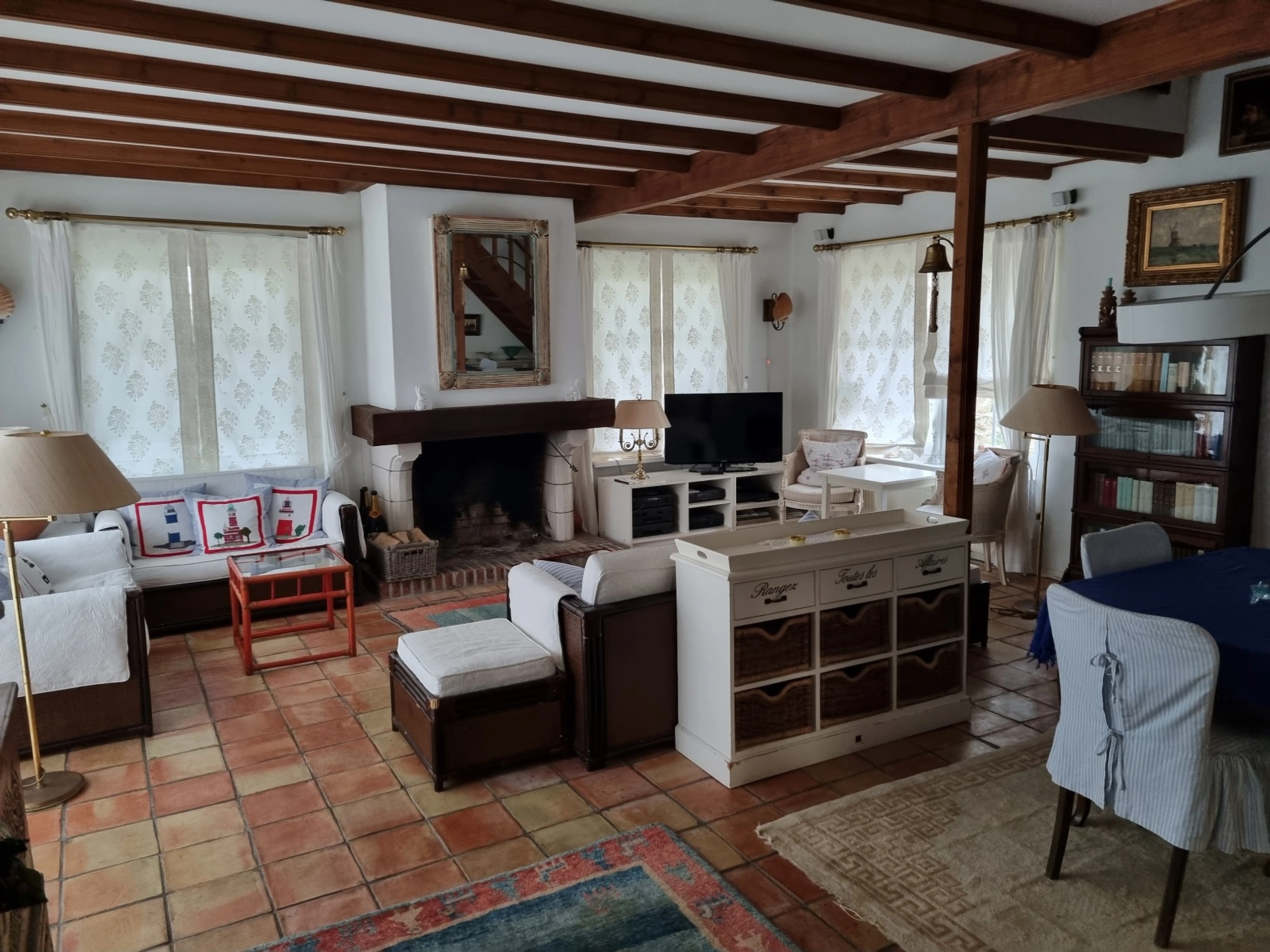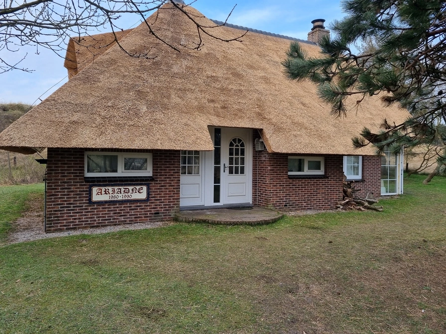 Das Ariadne ist ein freistehendes, strohgedecktes Haus in den Dünen zwischen Nes und Buren. Im Erdgeschoss befindet sich das gemütliche Wohnzimmer mit Kamin, Landhausküche und Speisekammer. Im Obergeschoss befinden sich drei Schlafzimmer, 1 mit einem Doppelbett von 140 x 200 cm, 1 mit 2 Doppelbetten von 140 x 200 cm und eines mit zwei Einzelbetten von 90 x 200 cm. Das Badezimmer hat eine Badewanne, Toilette und Waschbecken. Es gibt eine Terrasse und einen Parkplatz.