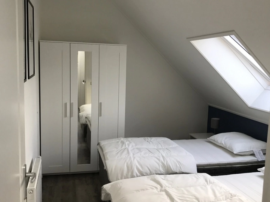 In Erdgeschoss gibt es einen Hausflur, Wohnzimmer mit offener Küche, separates WC und Badezimmer. Die Küche ist ausgestattet mit Kühlschrank, Spülmaschine, Senseo und Kombimikrowelle. Im großräumigen Sitzbereich steht ein Smart-TV. Im großen Badezimmer sind Dusche, Badewanne, Waschmaschine und Trockner eingerichtet. Das Obergeschoss hat zwei Schlafzimmer mit jeweils zwei Boxspringbetten. WLAN ist anwesend und im Erdgeschoss gibt es Fußbodenheizung. Draußen steht Ihnen eine eigene Terrasse mit Gartenmöbeln und ein Parkplatz zur Verfügung. Nach Rücksprache können ein Kinderbett und ein Kinderstuhl in die Wohnung gestellt werden.