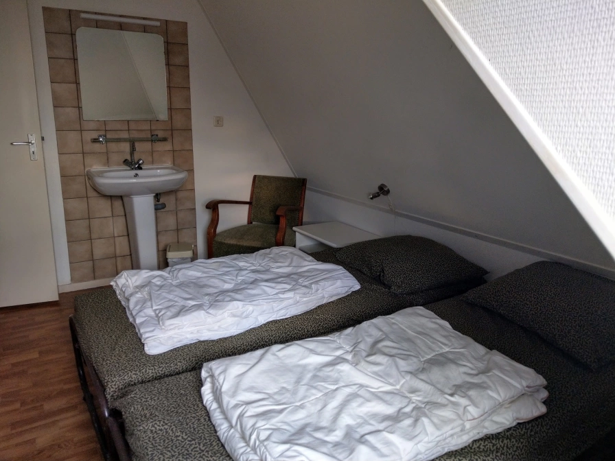 Bauernhofwohnung Molenaar ist geeignet für bis zu sieben Personen und liegt am Rand von Buren. Das Haus steht mit der Rückseite zur Strasse und ist mit der Bauernhofscheune verbunden. Die Terrasse ist im Süden ausgestattet. Das Wohnzimmer ist circa 35 m² groß. Es gibt vier Schlafzimmer im Obergschoss, das mit einer geraden Treppe (mit Geländern an beiden Seiten) zu erreichen ist. Zwei Schlafzimmer haben jeweils zwei Einzelbetten, ein Schlafzimmer hat ein Etagenbett und das letzte ist mit einem Einzelbett ausgestattet. Es gibt Waschbecken in den Schlafzimmer, die Douche und das WC sind separat im Erdgeschoss eingerichtet. In der Küche befindet sich eine Mikrowelle, eine Kaffeemaschine und ein Kühlschrank mit Gefrierfach. Das Wohnzimmer hat einen Fernseher und ein Radio. Es stehen Ihnen ein Parkplatz und eine Spielwiese zur Verfügung.