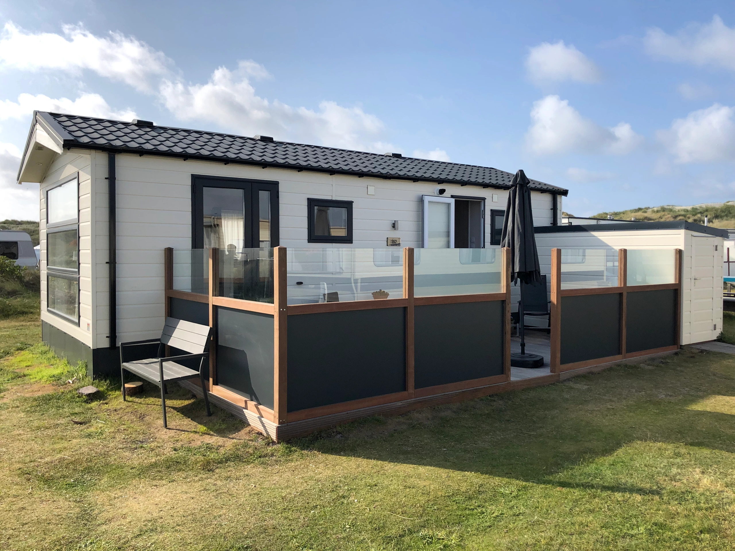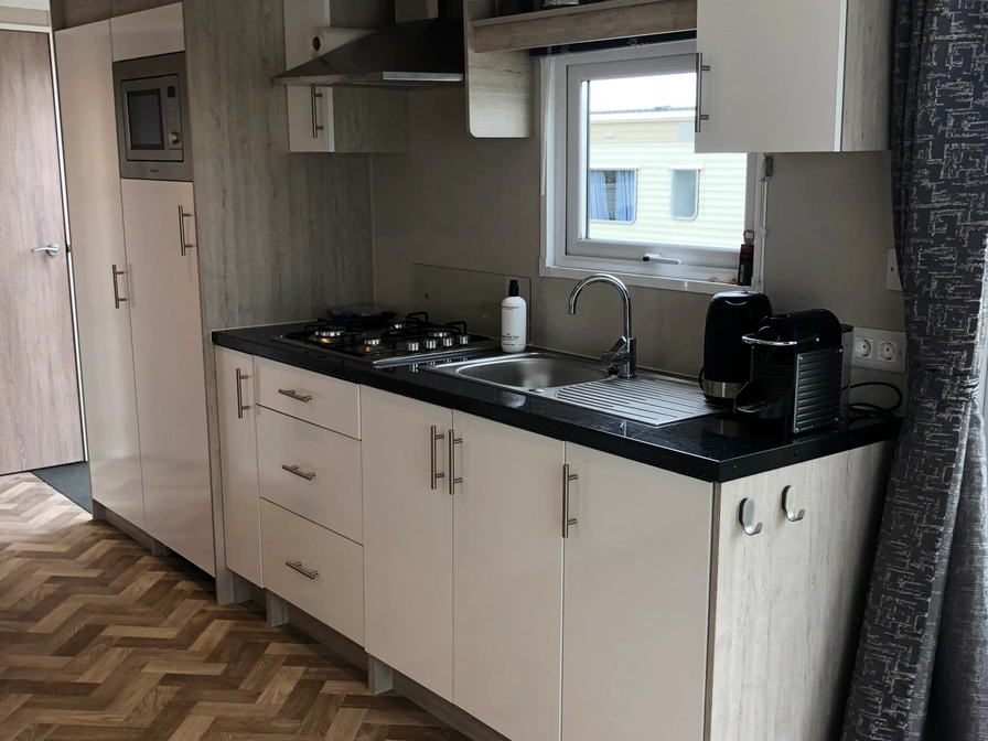 Sehr schönes Chalet (2022) in Strandnähed, auf dem Strandcampingplatz Duinoord. Im wunderbar hellen Wohnzimmer mit Smart-TV, Essecke, schönem großen Sofa und Sessel lässt es sich herrlich entspannen. Das Wohnzimmer verfügt über Flügeltüren zur Terrasse, ein großes Panoramafenster mit schöner Aussicht und Lichteinfall. Das Chalet hat Zentralheizung in jedem Raum, eine gute Isolierung und überall Doppelverglasung. Auf der Terrasse können Sie im Schutz des Terrassenzauns sitzen. Es gibt Terrassenmöbel und mehrere Ecken, in denen Sie sitzen, essen und entspannen können. Selbstverständlich steht ein Sonnenschirm bereit und die Terrasse ist durch die schönen, saisonal arrangierten Pflanzen besonders gemütlich. Im Inneren gibt es viel Stauraum. Ein zusätzlicher Bonus sind die Zeitschriften, Bücher und Brettspiele im TV-Schrank. Außerdem gibt es einen Ordner voller Informationen über die Insel. Es gibt eine gut ausgestattete offene Küche mit einer Kombi-Mikrowelle, Nespresso und Grundnahrungsmitteln wie Kaffee, Tee, Gewürzen, Zucker und Milch. Das Chalet verfügt über 2 Schlafzimmer. Im großen Schlafzimmer stehen ein Doppelbett von 1,60 m und ein geräumiger Kleiderschrank. Dank des guten Verdunkelungsvorhangs in Kombination mit den gefütterten Vorhängen können Sie hier gut schlafen. Im kleineren Schlafzimmer gibt es ein Etagenbett mit Kleiderschrank und Verdunklungsvorhang. Ein Reisebett kann in den Schlafzimmer leider nicht aufgestellt werden. Im Schuppen befinden sich verschiedene Extras wie Strandstühle, Strandspielzeug und vier Fahrräder. Es gibt ein Gazelle-Herrenfahrrad, ein Gazelle-Damenfahrrad, ein 22-Zoll-Snake-Batavo (Jungenmodell) und ein 27,5-Zoll-Mountainbike. Der Schuppen verfügt außerdem über eine Steckdose zum Aufladen von E-Bikes.