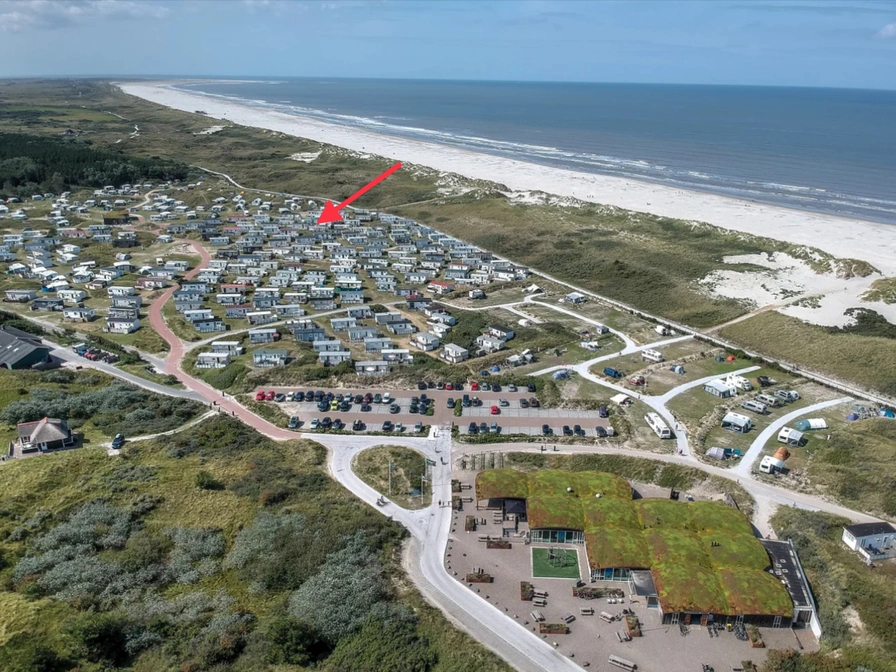 Das Chalet liegt nur 50 Meter vom Strandaufgang entfernt. Es ist innen und außen komplett ausgestattet. Es gibt einen Blick auf den Campingplatz, aber auch auf Dünen und Wald. Der Strandpavillon ist in fünf Minuten zu erreichen. Das Dorf Nes ist zu Fuß innerhalb einer halben Stunde erreichbar.