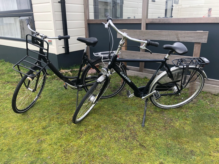 Es gibt zwei Damenfahrräder, ein Herrenfahrrad, ein 22-Zoll-Snake Batavus (Jungenmodell) und ein 27,5-Zoll-Mountainbike. Im Schuppen gibt es eine Steckdose zum Aufladen von Elektrofahrrädern.