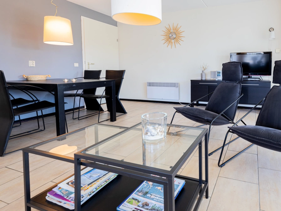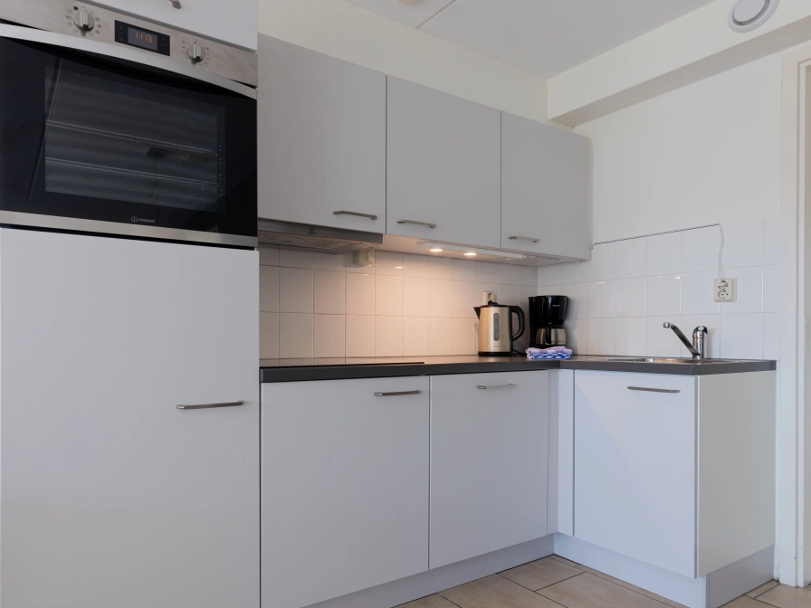 Escape ist eine geräumige Ferienwohnung im Erdgeschoss mit einem Garten und eine großzügige Terrasse. Morgens treten Sie durch die Terrassentür für ein leckeres Frühstück in der Sonne. Bis zum Ende des Nachmittags können Sie die Sonne neben der Wohnung genießen. Übrigens, auch bei Regen kann man oft noch draußen sitzen, die Terrasse ist nämlich teilweise überdacht. Die Wohnung verfügt über ein Wohnzimmer und eine offene Küche mit Geschirrspüler, Induktionskochfeld und Backofen. Es gibt zwei geräumige Schlafzimmer mit Doppelbett. Das Hauptschlafzimmer bietet Platz für ein Kinderbett, welches auf Wunsch zur Verfügung gestellt wird. Das Badezimmer ist mit einer Duschkabine und einem großen Waschbecken ausgestattet. Im Winter sorgt die Fußbodenheizung für zusätzlichen Komfort.