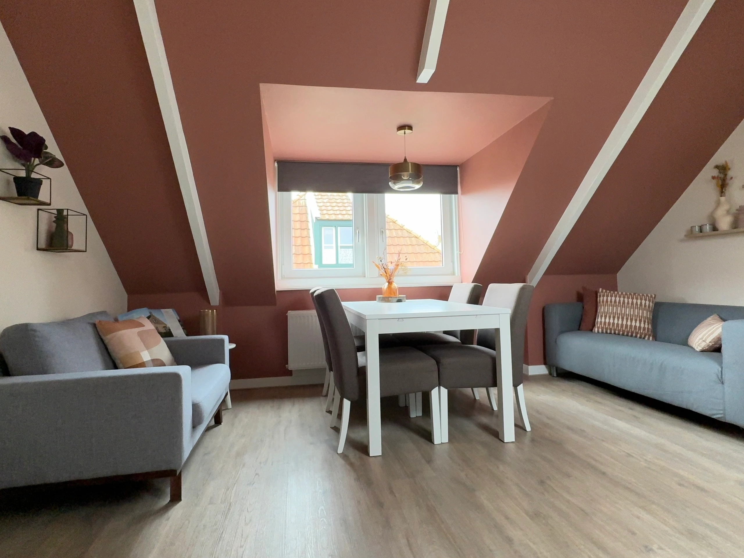 Das Appartement ist stimmungsvoll eingerichtet und verfügt über allen möglichen Komfort. Sie haben einen eigenen Eingang, Parkplatz mit Privatterrasse. Im Erdgeschoss finden Sie die komplett ausgestattete Küche und das Badezimmer. Oben gibt es den Wohnbereich mit Essecke, TV, DVD-Spieler, Leseecke und ein herrliches Sofa zum Ausruhen. Die Beiden identischen Schlafzimmer haben jeweils zwei Boxspringbetten, die zusammengestellt oder auseinander geschoben werden können.