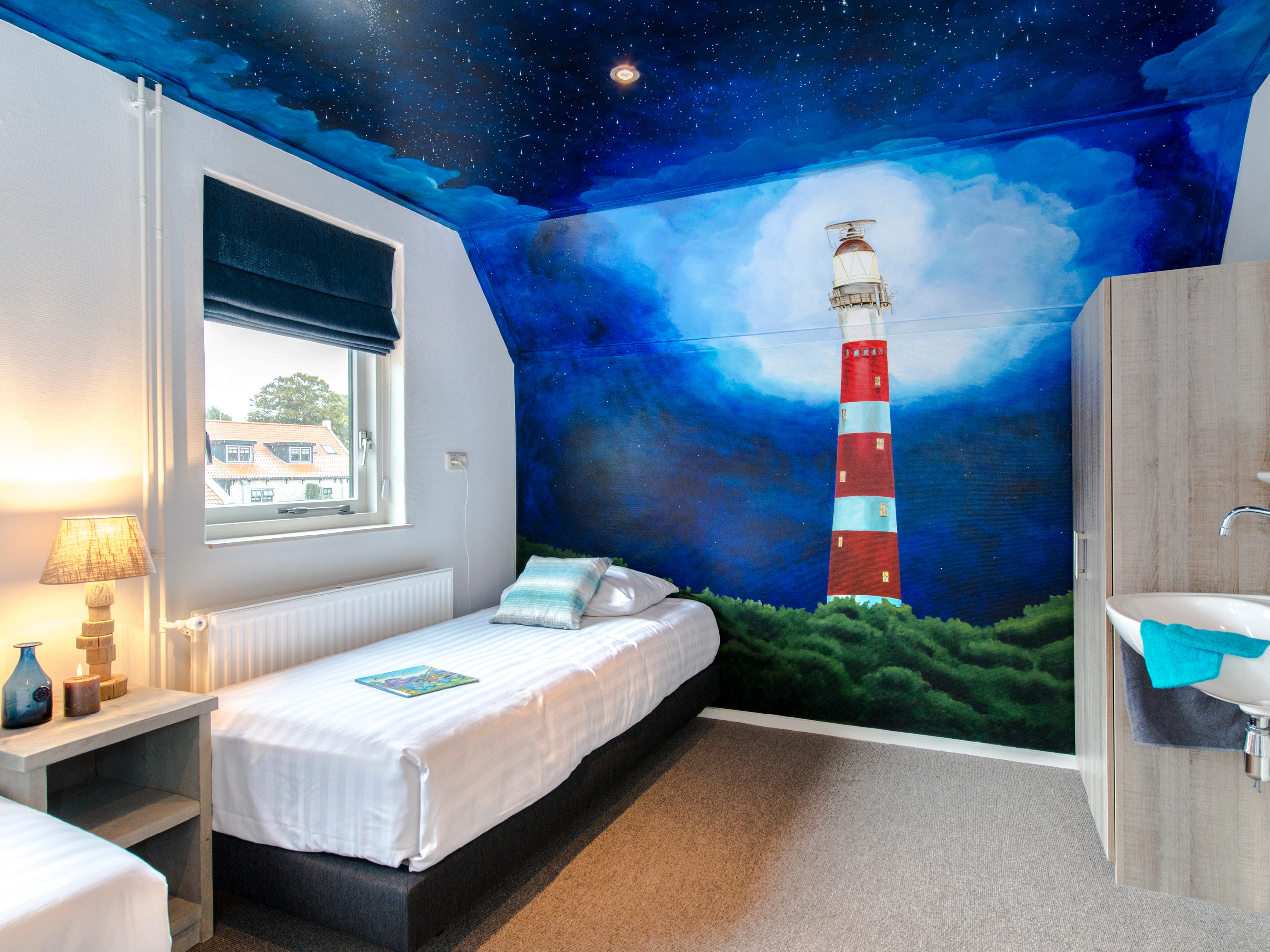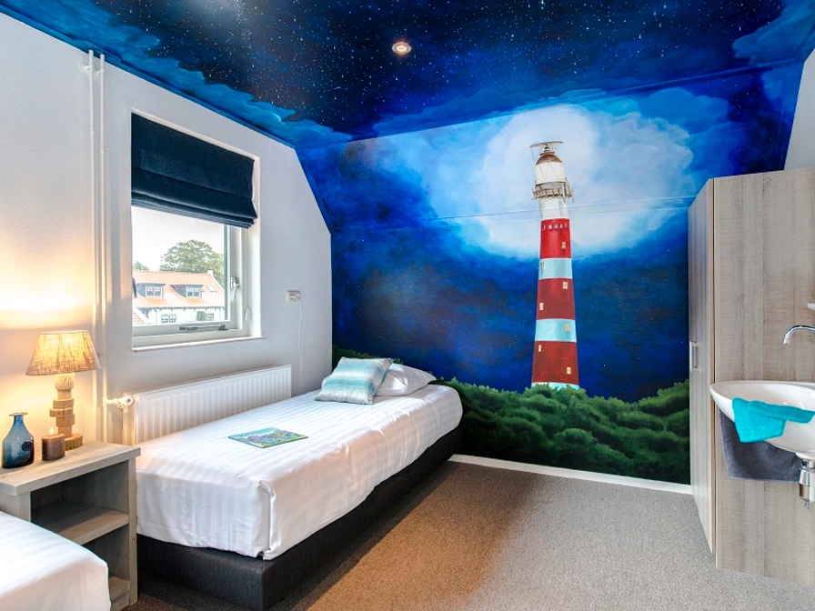 Das Haus hat ein attraktives und modernes Interieur. In Kombination mit dem geräumigen Layout ist dies eine großartige Adresse für Familien und Freunde. Das Schlafzimmer ist ein echtes Erlebnis für Kinder. Hier beobachtet der Leuchtturm von Ameland unter einem echten Sternenhimmel, der nachts zum Leben erweckt wird. Hier werden Kinderträume wahr. Sie können die Ruhe und Atmosphäre der Insel Ameland hier wirklich spüren. Aukje ist ein komfortables Ferienhaus für neun Personen. Das Wohnzimmer ist modern und geschmackvoll eingerichtet und verfügt über zwei schöne Sofas zum Entspannen, drei luxuriöse Ledersessel und einen geräumigen Esstisch, an dem Sie gemütliche Spiele spielen können. Die halboffene Küche ist komplett ausgestattet mit Herd, Geschirrspüler, Kombimikrowelle und Kühlschrank mit Gefrierfach. Darüber hinaus verfügt die Küche über die notwendigen Geräte wie Kaffee- und Senseo-Maschine, Wasserkocher, Stabmixer und Toaster. Das geräumige Schlafzimmer im Erdgeschoss verfügt über zwei Boxspringbetten und einen Wäscheschrank. Angrenzend befindet sich das Badezimmer mit Waschbecken, Dusche und Infrarotsauna. Natürlich gibt es auch eine Waschmaschine, einen Trockner und ein Standardinventar wie einen Staubsauger, ein Bügeleisen, ein Bügelbrett und Kindermöbel. Eine separate Toilette in der Halle. Die Treppen sind sowohl oben als auch unten mit Treppentoren gesichert. Im Obergeschoss befinden sich drei Schlafzimmer, eines mit einem doppelten Boxspringbett, eines mit zwei Boxspringbetten und im luxuriösen Leuchtturmraum mit Sternenhimmel befinden sich drei einzelne Boxspringbetten. Hier befindet sich auch das zweite Badezimmer mit Badewanne, Dusche, Waschbecken und Toilette. Von der Hintertür können Sie direkt auf die Terrasse gehen, wo sich ein großer Gartentisch mit Stühlen und Sonnenschirm befindet. Von der Terrasse gehen Sie direkt zur HappyNes-Site, wo für jeden etwas dabei ist. Klettergerüst, Go-Kart oder Spielfeld? Für jeden sein eigenes! Haustiere sind in Absprache erlaubt. Wifi ist kostenlos.