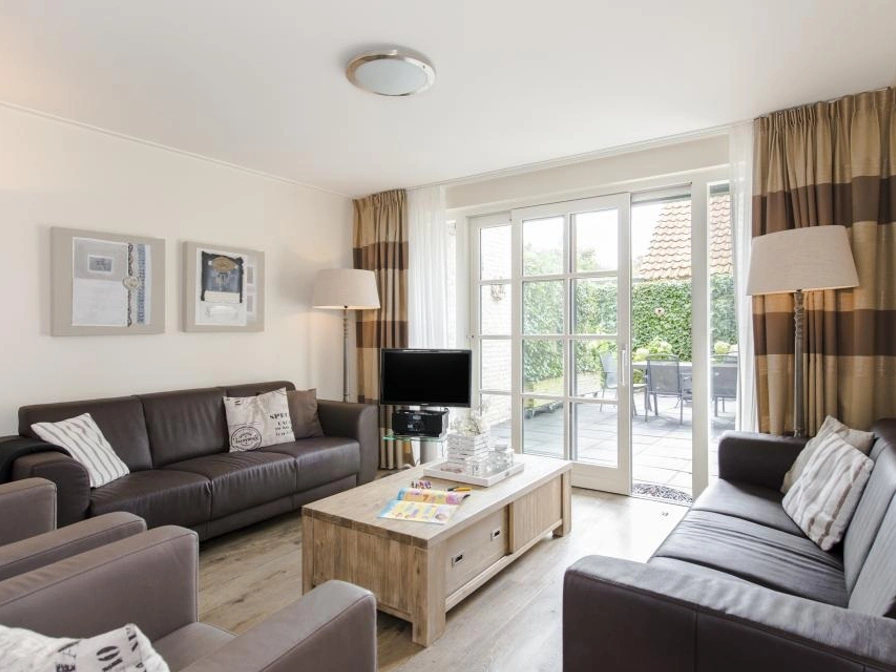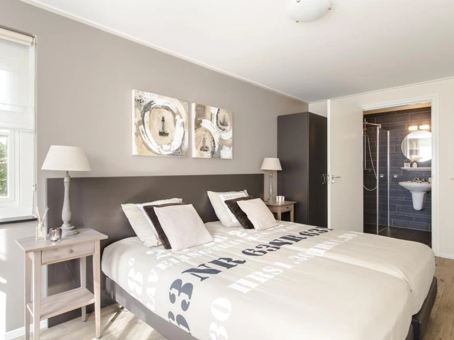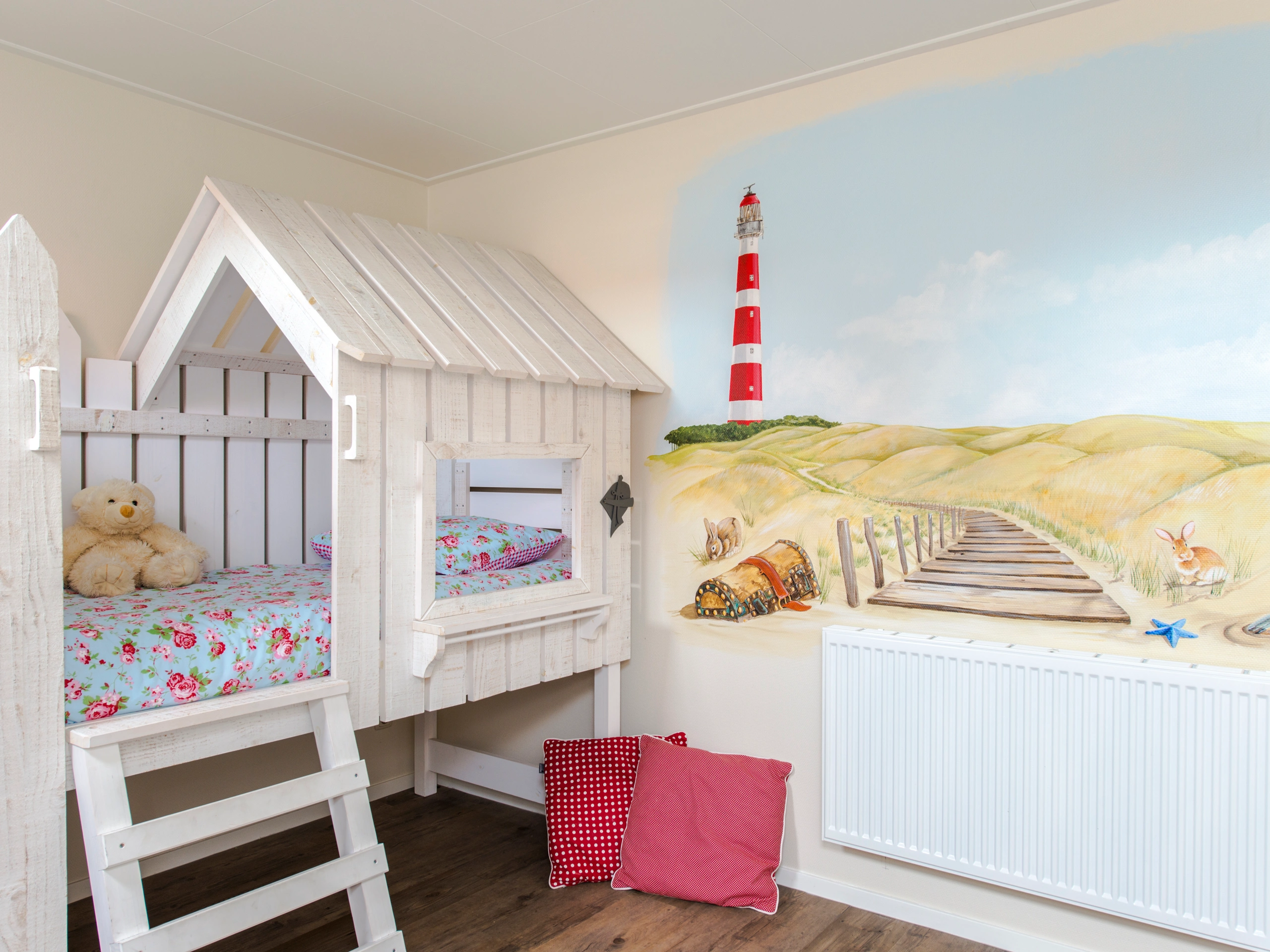 In diesem Ferienhaus ist an allen Luxus und Komfort für sowohl die großen als die kleinen Gäste gedacht. Neben Kindermöbeln, Spielküche und Spielzeug gibt es oben ein doch sehr besonderes Schlafzimmer! Ein echtes Strandzimmer mit rot-weißem Leuchtturm, Kaninchen, Möwen und einer wahrhaftigen Schatzkiste. Hier fühlen Sie sich liegend wie in Ihrem weißen Strandhaus mitten auf dem Strand! Vor dem Schlafengehen noch eben eine DVD gucken vom eigenen Bett aus und dann herrlich wegträumen. Morgens aus dem Bett springen und während die meisten noch schlafen schon mal bei den Kaninchen gucken. Frühstücken wenn die große Schwester beim Bäcker leckere Brötchen geholt hat! Aber nicht zu lange, denn draußen warten die neuen Freunde und Freundinnen schon auf der Spielwiese. Zusammen auf’s Trampolin oder Fußball spielen, Verstecken spielen, Go-Kart fahren oder sich einfach mit dem anderen frei zu gebrauchenden Spielmaterial beschäftigen. Im Erdgeschoss befindet sich das gemütliche Wohnzimmer mit einer offenen Küche. Durch eine Schiebetür gehen Sie vom Wohnzimmer auf die Terrasse. Hiermit verlängern Sie das Wohnzimmer und holen Sie Draußen nach drinnen - herrlich! In der Küche steht ein großer Esstisch, der sich auf 2,40 Meter verlängern lässt. Die großzügige Anrichte bietet Platz an viel Kochvergnügen. Neben dem Wohnzimmer befindet sich ein Schlafzimmer mit zwei Boxspring-Einzelbetten, LCD Fernseher und einem schönen Schrank. Daran grenzt ein luxuriöses Badezimmer mit Waschbecken, begehbarer Dusche, Regen- und Handdusche. Kommt auch ein Baby mit? Auch daran haben wir gedacht. Ein Kinderbettchen, -stuhl, eine -badewanne und ein Laufgitter gehören bei uns zum Standard, ebenso wie das Nijntje Kinderbesteck und verschiedene Plastikschälchen und -becher. Im Obergeschoss gibt es drei Schlafzimmer und ein nobles Badezimmer. Ein Schlafzimmer hat ein Boxspring-Einzelbett und einen Schrank, ein Schlafzimmer ist mit zwei Boxspring-Einzelbetten ausgestattet, LCD- Fernseher, Schreibtisch und Wäscheschrank und schließlich noch ein wunderschönes Zimmer. Sie wissen schon - das mit dem Strandhäuschen! Nach einem langen aktiven Tag an der frischen Luft, können Sie in dem zweiten komfortablen Badezimmer mit geräumiger Dusche, doppeltem Waschbecken und Toilette, herrlich relaxen im Whirlpool.