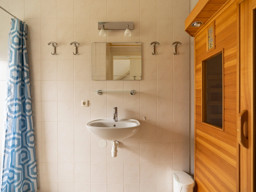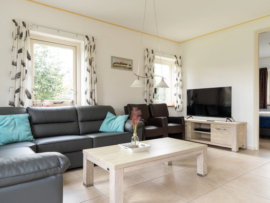 Dieses Haus ist für 8 Personen gedacht und verfügt über 8 Boxspringbetten, ein Bad, zwei Toiletten, eine Infrarotsauna, eine Waschmaschine und einen Trockner, eine Fußbodenheizung, ein Kinderbett und einen Stuhl sowie Zugang zu kostenlosem WLAN. Darüber hinaus verfügt dieses Haus über eine luxuriöse Küche mit Geschirrspüler, Mikrowelle, Backofen, geräumigem Kühlschrank, Gefrierfach, Kaffeemaschine, Senseo und Wasserkocher. Im Erdgeschoss befinden sich eine Toilette, ein Raum mit Infrarot-Sana und Dusche sowie ein Schlafzimmer mit Doppelbett (Bettgröße 1,80 x 2,00), sodass auch behinderte Menschen die Häuser gut nutzen können. Im Obergeschoss befindet sich ein geräumiges Badezimmer mit einer Badewanne und einer Toilette. 2 Schlafzimmer mit insgesamt 6 Betten (Bettgröße 90 x 200). Eines dieser Zimmer verfügt über einen zusätzlichen TV. Die Terrasse befindet sich im Süden.