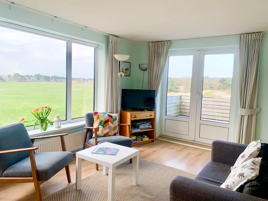 In den Dünen gelegen mit schöner Aussicht auf Wald und Felder