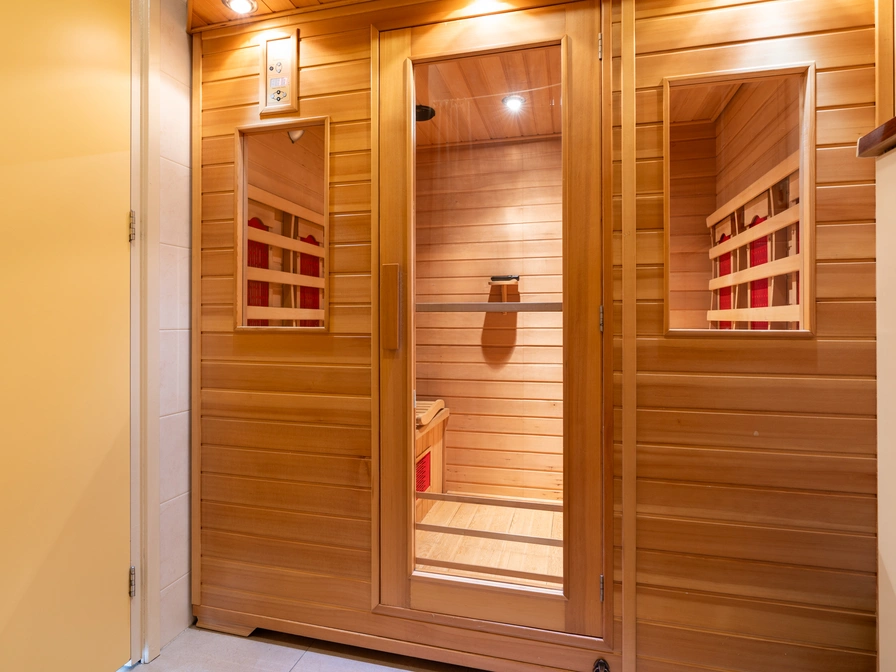 Dieses Haus ist für 8 Personen gedacht und verfügt über 8 Boxspringbetten, ein Bad, zwei Toiletten, eine Infrarotsauna, eine Waschmaschine und einen Trockner, eine Fußbodenheizung, ein Kinderbett und einen Stuhl sowie Zugang zu kostenlosem WLAN. Darüber hinaus verfügt dieses Haus über eine luxuriöse Küche mit Geschirrspüler, Mikrowelle, Backofen, geräumigem Kühlschrank, Gefrierfach, Kaffeemaschine, Senseo und Wasserkocher. Im Erdgeschoss befinden sich eine Toilette, ein Raum mit Infafrood-Sauna und Dusche, ein geräumiges Badezimmer mit Badewanne und ein Schlafzimmer mit Doppelbett (Bett 1,80 x 2,00). Es gibt ein geräumiges Zimmer mit einem schönen Ecksofa. In der obersten Etage befinden sich 2 Schlafzimmer mit 6 Boxspringbetten (90 x 200) und eine separate Toilette. Die Terrasse befindet sich im Süden.