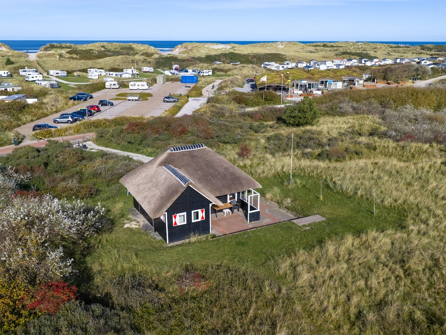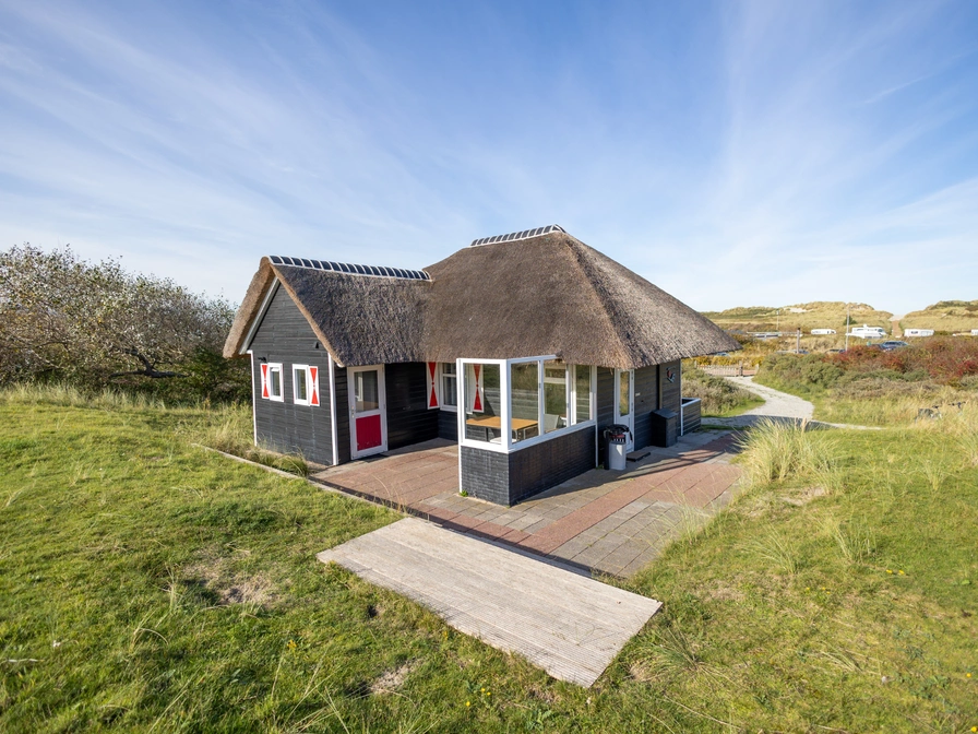 Traditionelles Amelander Dünenhaus mit Meerblick