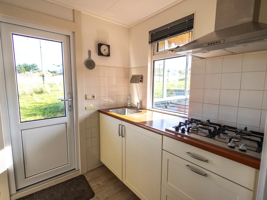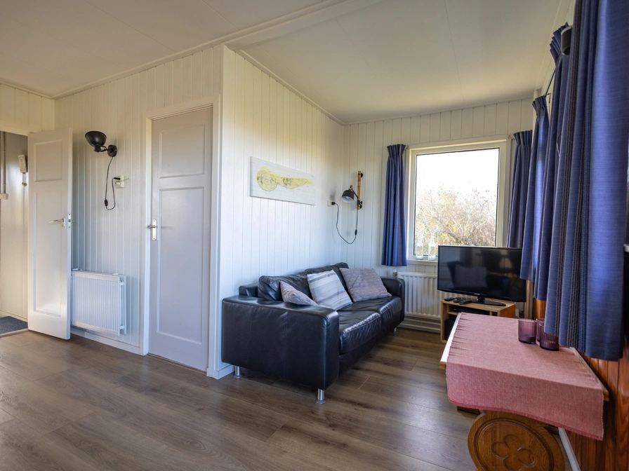 Im Ferienhaus Midgaard erleben Sie das Inselgefühl in seiner reinsten Form. Das Wohnzimmer ist schlicht mit einem Esstisch für sechs Personen und einer kleinen Sitzecke mit Fernseher eingerichtet. Die Küche ist mit Gasherd, Kühlschrank (mit Gefrierfach), Kombimikrowelle, Kaffeemaschine, Wasserkocher und einer kompletten Küchenausstattung ausgestattet – alles, was Sie für eine Mahlzeit nach einem erlebnisreichen Tag in der Natur benötigen. Im Erdgeschoss befinden sich ein Schlafzimmer mit einem Doppelbett (Achtung: dieses ist nicht umgehbar), ein kleines Zimmer mit einem Etagenbett und ein Badezimmer mit Dusche, Waschbecken und WC. Im Obergeschoss erwartet Sie ein geräumiges Schlafzimmer mit vier Einzelbetten. Eine Waschmaschine steht Ihnen ebenfalls zur Verfügung. Draußen können Sie die private Terrasse mit Windschutz und Gartenmöbeln genießen, wo Sie geschützt sitzen und den Blick über die Dünen schweifen lassen können. Dank der Lage genießen Sie hier zu jeder Tageszeit die Sonne. Und wundern Sie sich nicht, wenn morgens ein paar Rehe oder Fasane vorbeikommen. In Midgaard sind Sie ein Gast inmitten der Natur.