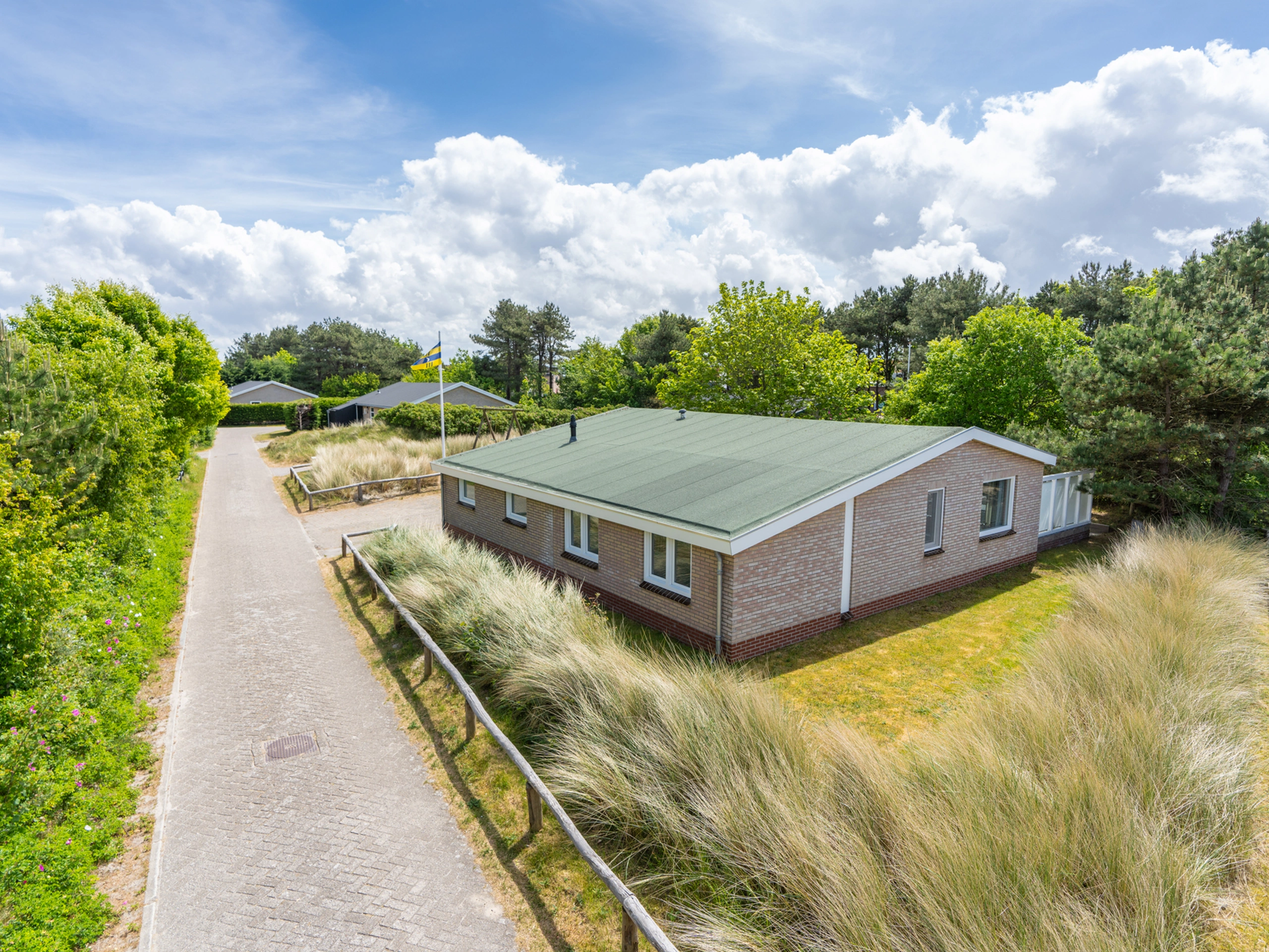 Ein Bungalow mit einem 600 m² großen Grundstück, eigenem Parkplatz und einer großen Terrasse im Süden mit viel Privatsphäre, herrliche Lage in einer natürlichen Umgebung. Der Bungalow hat ein großräumiges Wohnzimmer, stimmungsvoll und modern eingerichtet und u.a. ausgestattet mit einem Smart-TV. Die modern ausgestattete Küche verfügt über jeglichen Komfort (Kühlschrank, Backofen, Spülmaschine). Es gibt drei ebenerdige Schlafzimmer, jeweils mit eigenem Waschbecken. Im Elternschlafzimmer steht auch ein Fernseher. Im Abstellraum steht ein zweiter Kühlschrank mit Gefrierfach, eine Waschmaschine und ein Trockner.