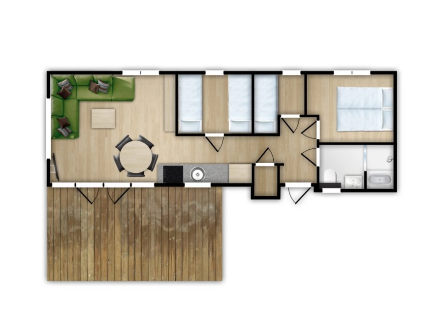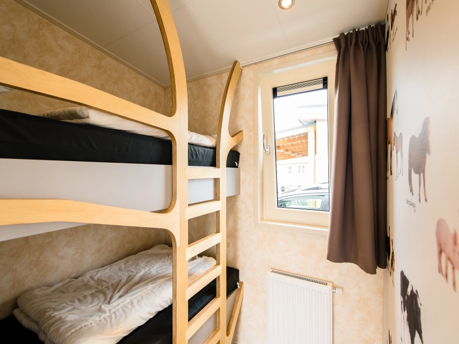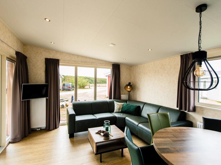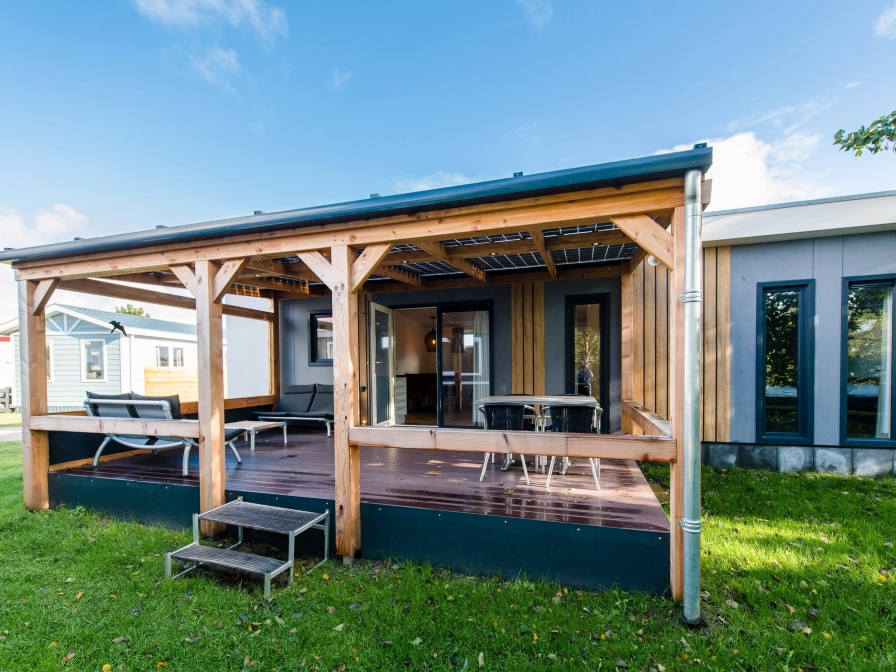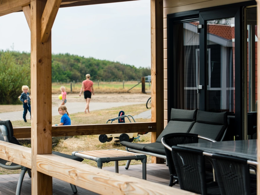 Solarchalet: Das komfortabele Feriengefühl für max. 6 Personen. Das Solarchalet ist in seiner Klasse einzigartig in der Ausstrahlung und Milieubewusstsein. Diese Chalets für Max. sechs Personen sind energieneutral, sehr kinderfreundlich und erfüllen die höchsten Qualitätsmaßstäbe. Drei Schlafzimmer: Eins mit Doppelbett (Lits Jumeaux), eins mit zwei Einzelbetten und eins mit Kinderetagenbett. Sehr gut ausgestattete Küche mit u.a Spülmaschine, Induktionsherd, Kombi-Ofen, Kühlschrank, Kaffeemaschine und Senseo. Gemütliches Wohnzimmer, versehen mit Esstisch, Sitzecke und digitalem Fernseher und Flügeltüren zur Veranda. Geräumiges Badezimmer mit Dusche, Toilette und Kinderbad. Standard eingerichtet mit Kinderbett und Hochstuhl. Kleiner Spielplatz (Sandkasten und Wippen) mit Blick von der Veranda. Die Solarchalet ist ausgestattet mit Sonnenkollektoren, Wärmepumpe und sehr guter Isolierung. Ihr Auto können Sie auf den ausgewiesenen Parkplätzen auf dem Campingplatz abstellen.