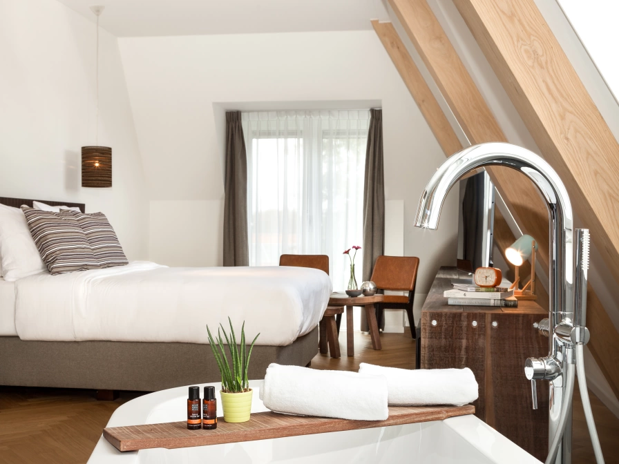Fühlen Sie sich wie zu Hause im schönsten Boutique-Hotel Amelands. Perfekt zentral gelegen mit stilvollen Zimmern und Suiten. Das Van Heeckeren Hotel bietet die stilvollsten Zimmer und Suiten Amelands! Unsere Zimmer sind in allen Größen und Formen erhältlich und verfügen über tolle Extras. Doppelte Regenduschen, Whirlpools, Naturstein im Badezimmer und Möbel aus gebrauchten Spundwänden. Egal für welche Größe Sie sich entscheiden, alle Zimmer bieten die üblichen Van Heeckeren-Vorteile. Dazu gehören kostenloser Kaffee, Tee und WLAN, ein Minikühlschrank im Zimmer und die besten Plätze in unseren Restaurants!