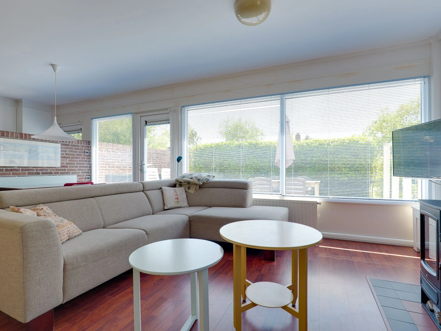 Die Einteilung besteht aus einem Wohnzimmer mit einer geräumigen Sitzecke und einer Essecke ausgestattet mit einem behaglichen Kamin mit „Holzblöcken“, Flachbildfernseher, neuer halboffenen Küche mit u.a. Spülmaschine, Kombi-Heißluftofen, Kühlschrank, Induktion, Filter Kaffemaschine und Senseo-Apparat. Es gibt drei Schlafzimmer: eines mit einem Doppelbett (zwei Matratzen), eines mit einem Einzelbett das sich leicht in ein Doppelbett umwandeln lässt (zwei Matratzen) und eines mit einem Einzelbett und einem Waschtisch. Das Badezimmer ist mit Fußbodenheizung ausgestattet und hat eine bodengleiche Dusche, ein Badezimmermöbel und ein separates WC. Es gibt einen großräumigen Abstellraum mit Waschmaschine, extra Anrichte, ferner steht Ihnen ein Fahrradschuppen zur Verfügung. Rundum ist ein sonniger Garten angelegt, mit viel Privatsphäre und zwei großen Terrassen. Für Kinder gibt es im Garten eine Doppelschaukel und weitere Spielsachen. Ferner gibt es einen überdachten Patio, der für viele Zwecke benutzt werden kann. Ihr Auto kann auf dem eigenen Gelände abgestellt werden. Extra: Grill, Kinderhochstuhl, Infrarotsauna im Hauswirtschaftsraum.