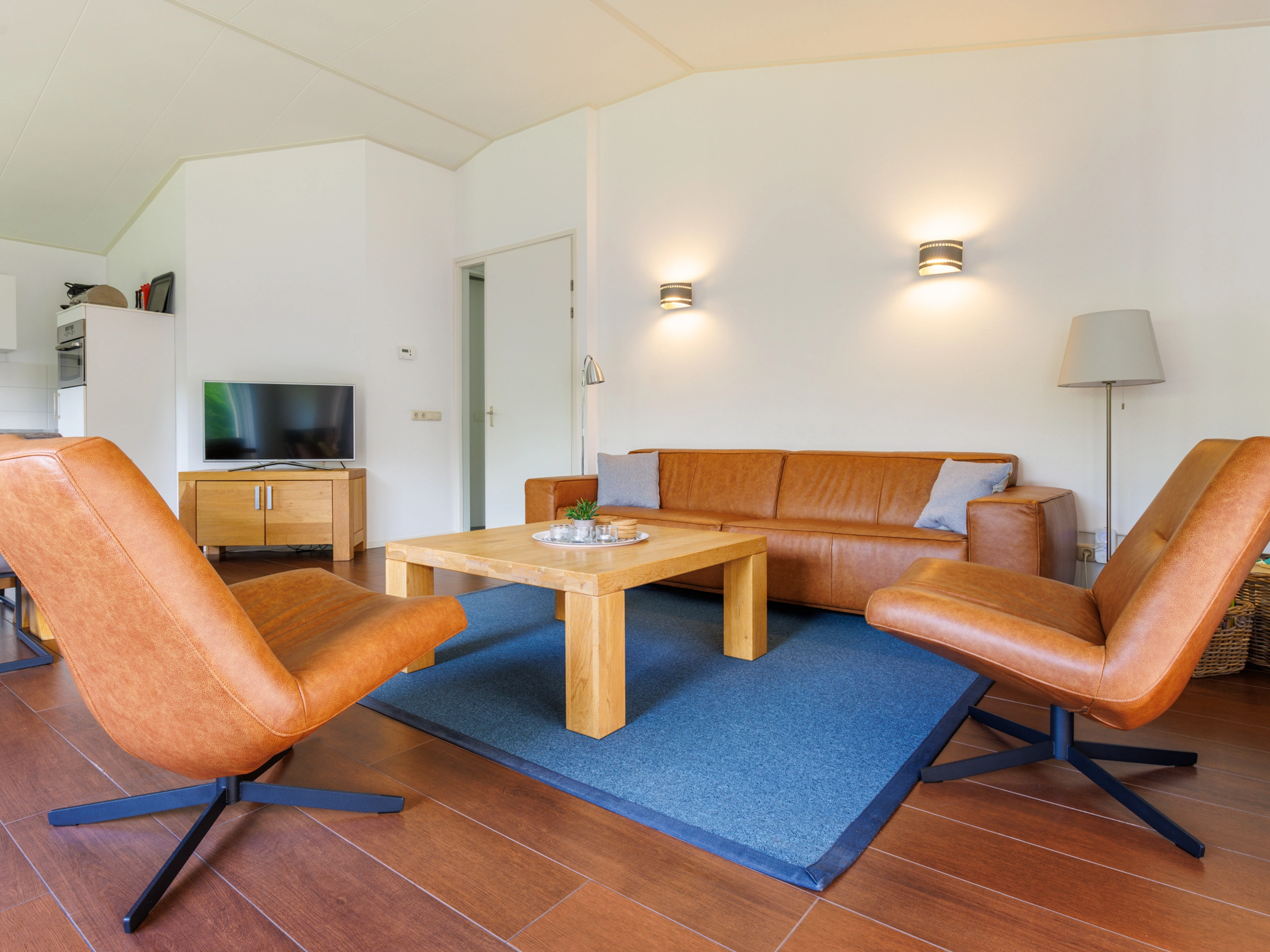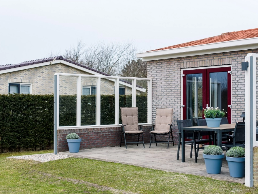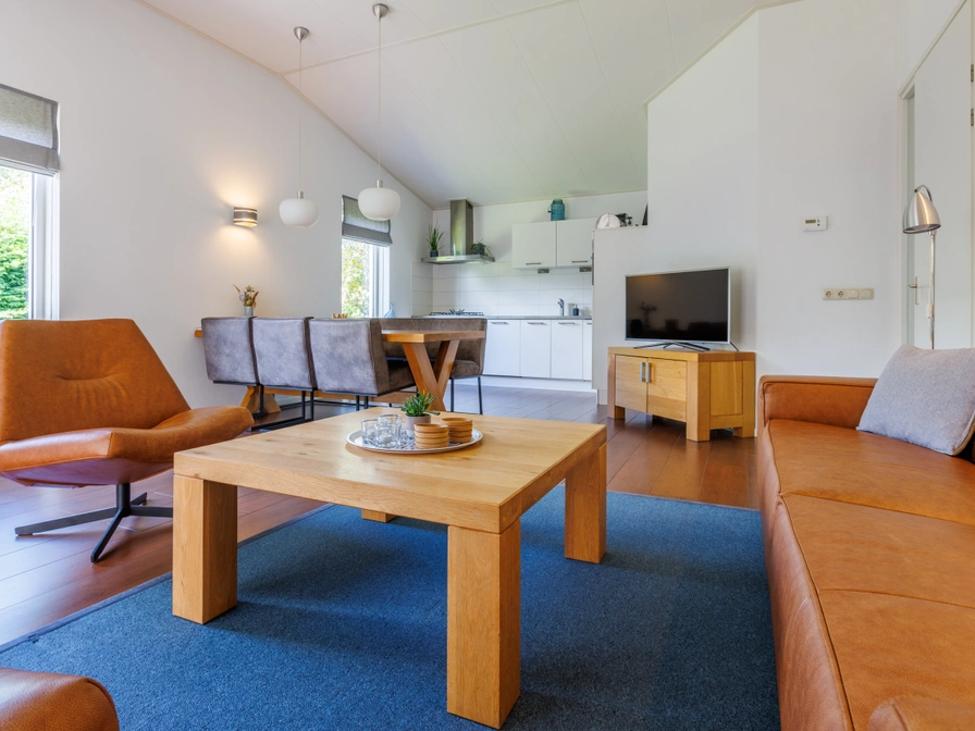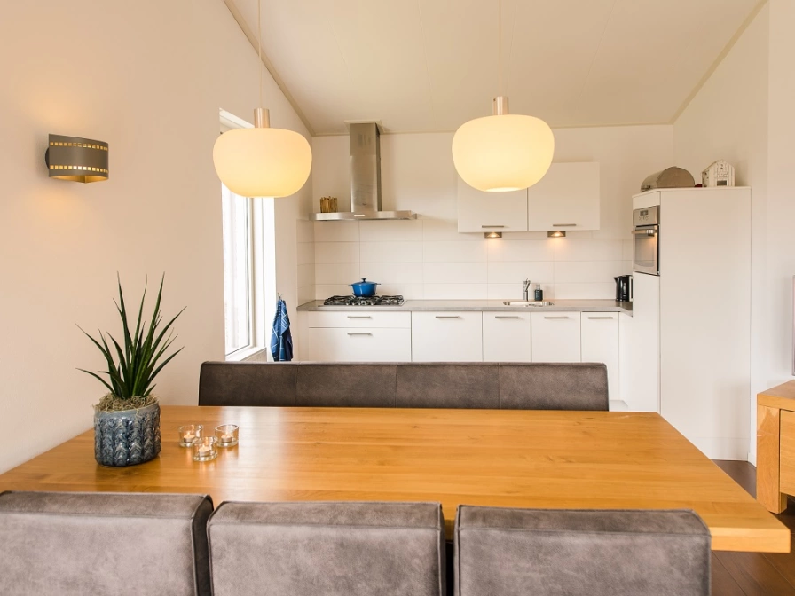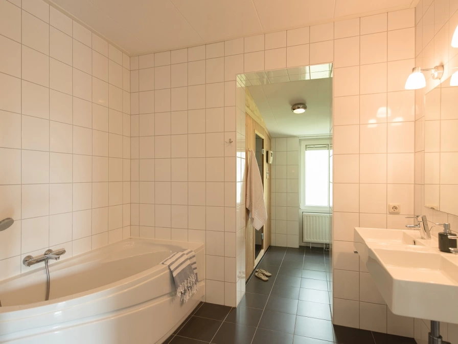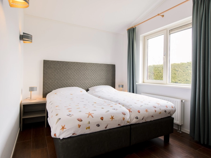 Bungalow Bonte Piet has a cozy living room with a design gas fireplace, luxurious armchairs, Smart TV, DVD player and a dining area. The modern kitchen is equipped with a five-burner gas stove including wok burner, dishwasher, combi microwave, Nespresso, filter coffee maker, kettle, toaster, hand blender and juicer. The bathroom has a 4 person Finnish sauna, bath, shower, double sinks, washing machine and dryer. There is a separate toilet. The three bedrooms are equipped with single box-spring beds. One of the bedrooms has an LCD TV. One of the rooms also has a wooden cot for the youngest residents. The terrace with garden furniture, parasol and barbecue is south-facing. The spacious garden is located around the bungalow. There is a storage room with charging point for the electric bicycle.