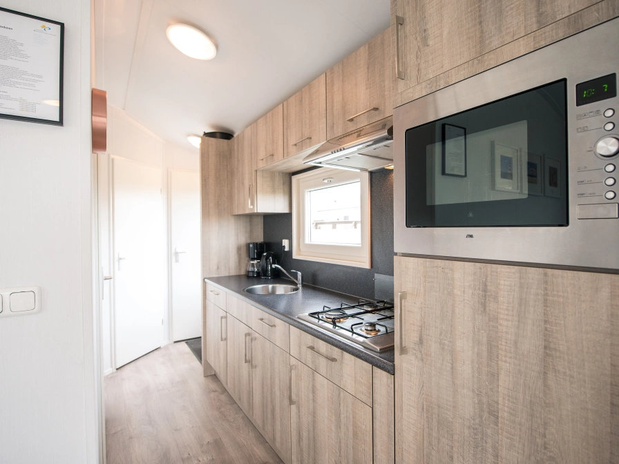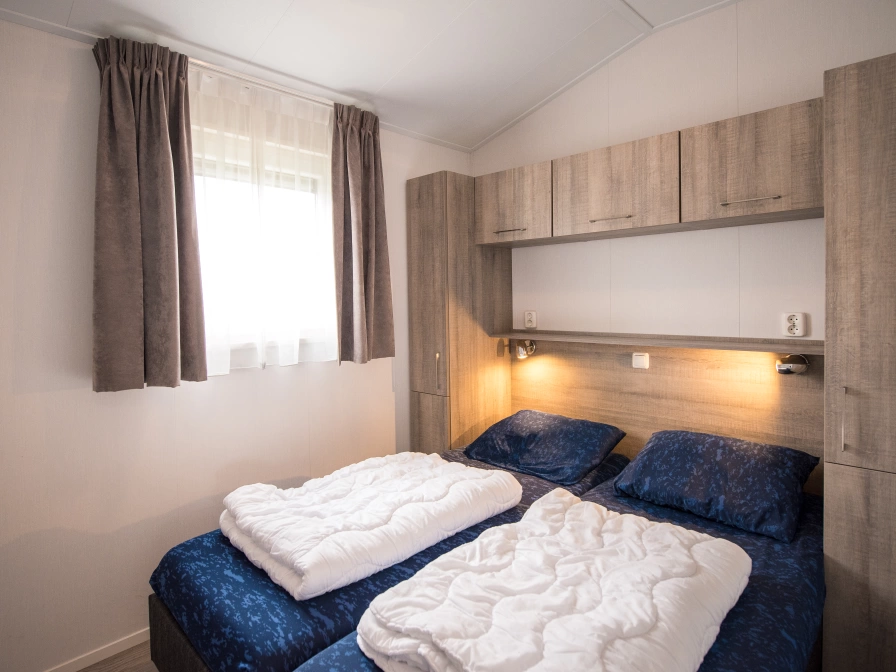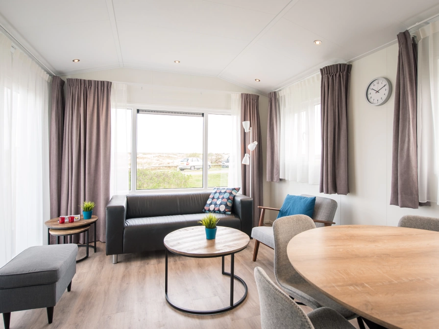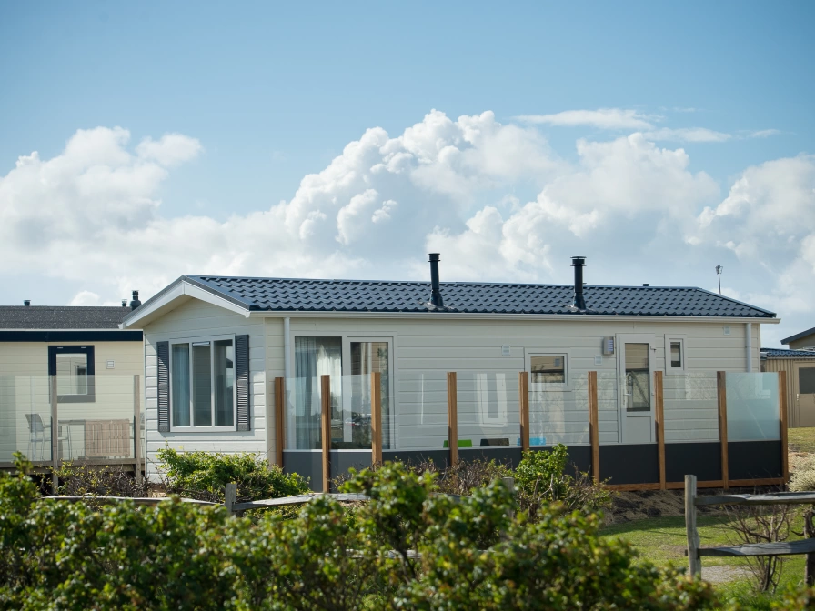 Camping Roosdunen rents beautiful, modern and well-maintained caravans of the Gritter brand, which guarantees comfort and quality. The interior is suitable for 4 to 5 persons and all chalets have a beautiful, free location. The caravans have a bedroom with a double bed and a bedroom with a single bed and a bunk bed. In this bedroom the 1 bed can be folded up to place a cot if desired. The living room consists of a spacious sitting area, dining area and a complete kitchen block. The chalet has a shower and toilet. The chalets are equipped with central heating or a well-functioning stove. The chalets are also well insulated and are equipped with double glazing, so also very suitable for the colder months! The inventory includes a TV with cable connection and a microwave. In addition, you can use our wireless internet connection for free. Single duvets are provided, but linen must be brought by yourself. It is also possible to rent linen at the campsite! Pets are allowed in consultation. In the period from April 28th to September 15th you can make free use of the outdoor swimming pool at the campsite. The caravans have a terrace with patio screens, furniture and a separate storage room. Placing an extra tent by yourself is possible.