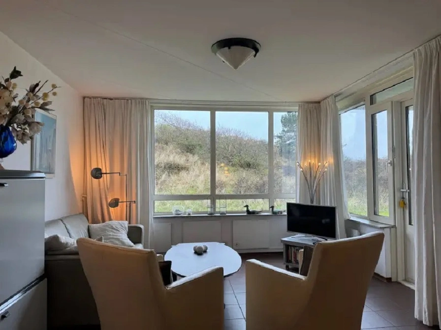 Duinrust is a spacious, comfortable and pleasantly furnished luxury apartment with afternoon and evening sun. 200 meters from the beach, in a very quiet place in the middle of the dunes: Ostrea. Ground floor and located on the ground floor. Suitable for 2 people (and a child up to 3 years old) and a dog or other pet. The apartment is approximately 65 square meters. There is a separate toilet, a living room, an open kitchen, a bedroom and a bathroom. The bathroom has a bath, a sink and a shower cabin. The bedroom has two, comfortably pushed together, single beds including duvets, a closet, two bedside tables and two reading lamps. The living room has a dining area, a leather sofa with two leather chairs and a widescreen Full HD smart television with SmartHub (including Netflix, Youtube, Videoland etc), stereo and books. Free wireless internet (100 Mb / s fiber optic) is available. The kitchen is equipped with all modern conveniences, including a dishwasher, a Nespresso and a Senseo machine.