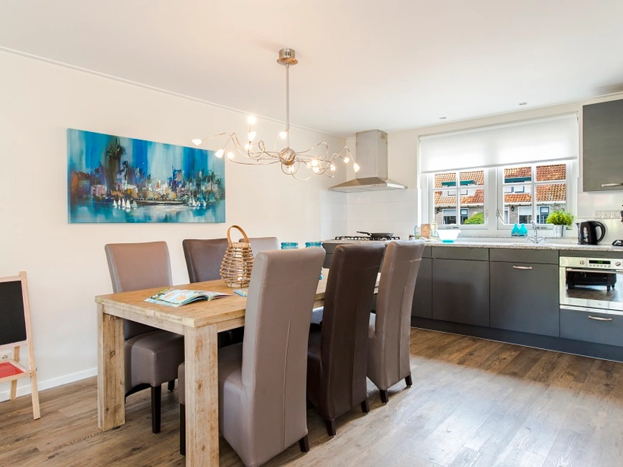 Children can play safely in the enclosed green yard of HappyNes. The sandpit, climbing frame and slide are close to the house. Or do you feel like go-karting or cycling? Kelly's central location on the Wadden island of Nes makes this holiday home a favorite base for sporty walking or cycling holidays on the island. The center of Nes, with many terraces, restaurants and shops, is less than three minutes' walk away. It is a ten minute walk to the ferry and the beach, forest and dunes. The spacious living room has a sitting area with two three-seater sofas to watch TV in the evening together. For the children there are DVDs, games and a play kitchen. Is there a baby coming? That has also been thought of. A cot, chair, bath and playpen are standard available. As well as Miffy children's cutlery and various plastic dishes and cups. On the ground floor there is a spacious bedroom with two single box-spring beds, LCD TV, a spacious closet and an adjoining luxury bathroom with sink, walk-in shower, rain shower and hand shower. There are three bedrooms on the first floor. A room with a single box-spring bed, a bedroom with two single beds, an LCD TV, desk and wardrobe and then a beautiful children's room: Have you always wanted to sleep in a beach house bed? Then this is the chance. But before they go to sleep, the children can watch a DVD in the room. Staying in Kelly is a big party for children! In the spacious bathroom with generous shower and whirlpool, for those who cannot last long enough an island day with fresh sea air, there is the opportunity to enjoy the whirlpool. Kelly really enjoys it! The house has WiFi and a washing machine and dryer. There is a parking space for one car at the house.