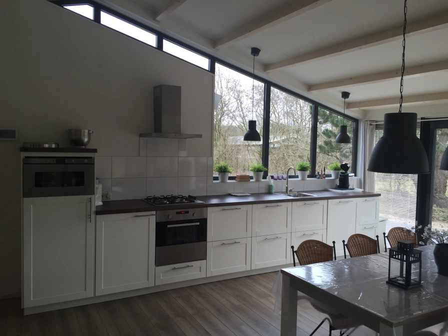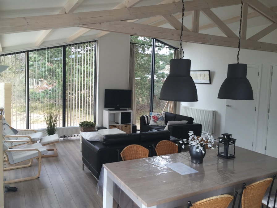 'HOOGTIJ' is a detached bungalow, renovated in 2016, tastefully decorated and equipped with every comfort. The bungalow has a spacious and bright living room (42 m²), with a comfortable sitting area, equipped with a smart TV (including Netflix, many extra German channels and ESPN) and Sonos sound equipment, a dining area and a new fitted kitchen with all appliances (hob, oven, extractor hood, refrigerator, freezer, dishwasher, microwave, a Nespresso machine with milk frother, a normal coffee machine and a Senseo machine). The living room offers access through French doors to a spacious, sunny and sheltered terrace facing south (35 m²). There are 3 bedrooms with box springs, the master bedroom has a new (2023) box spring combination (dimensions 2 x 90 x 200). The master bedroom has its own access to the bathroom and is equipped with a second TV. The bathroom has a walk-in shower, a 2nd toilet and a washbasin with double tap. In addition, there is a separate toilet and a storage room, in which, among other things, the washing machine and dryer are placed. The bungalow is suitable for occupancy by 5 people. Due to the renovation, in which extra attention has been paid to insulation and HR glazing, bungalow 'Hoogtij' is ideally suited for habitation in all seasons.