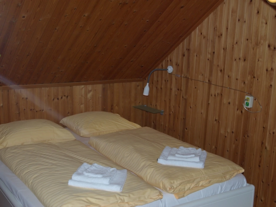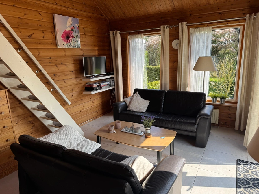 Julique (75 m²) has three bedrooms for up to 5 people. That is to say, a family with 2 adults and 3 children or 4 adults. There is also a living room with dining area and kitchen (26 m²) and a bathroom with shower, toilet and sink (6 m²). The bedroom on the first floor (14 m²) is accessible from the living room by a wooden staircase and has two single beds with two duvets. The bedroom on the ground floor (8 m²) has two single beds with duvets and a flat screen TV on the wall. The third bedroom (5 m²) on the ground floor has a single bed with duvet. There is a dishwasher, a washing machine, a flat screen TV with cable connection, a stereo system, a DVD player, a small oven, a microwave and wireless internet. For the little ones there is a cot, a high chair, a sandbox and children's toys.