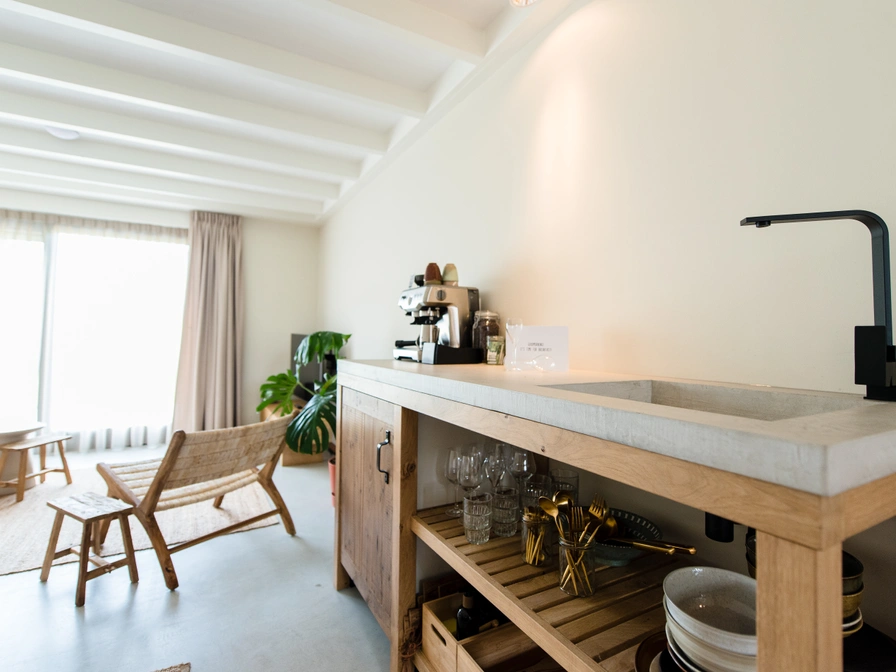 This suite stands out for its spacious private terrace, luxurious whirlpool, and blend of comfort and style. The terrace offers the perfect setting for breakfast al fresco in the morning sun or relaxing with a drink in the evening. The double rain shower, barista espresso machine, and high-quality furnishings give the suite a premium hotel feel. Its ground-floor location makes everything feel extra accessible and spacious, ideal for guests who enjoy privacy, comfort, and a touch of luxury during their stay on Ameland.