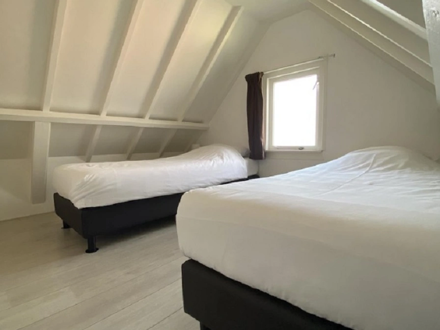 The Klène Huuske consists of a cosily furnished living room/kitchen and is fully equipped. Upstairs are 2 bedrooms, each with 2 single beds, washbasin and wardrobe. The shower and toilet are located downstairs. Wi-Fi is available. On the north is the terrace, where you can enjoy the sun. The terrace is fenced so that you can easily let your child play alone. In the communal playground there is a possibility to barbecue, relax in the sun or play outside. It is also nice to know that there is a place in the joint playing field where our chickens roam. If you feel like a fresh egg, this is possible!