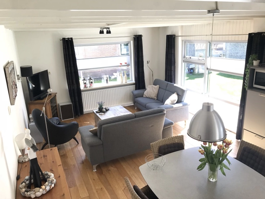 Lyanne is a detached holiday home for four people. The house has a living room and kitchen (approximately 35m²). The kitchen is equipped with a refrigerator with freezer, dishwasher, ceramic hob, coffee maker, Senseo machine and a microwave. The living room has a TV and a radio. The house has two bedrooms. Both on the top floor and both with two single beds. Through the hall you reach the bathroom with a shower and sink and the separate toilet. The holiday home has its own parking space.