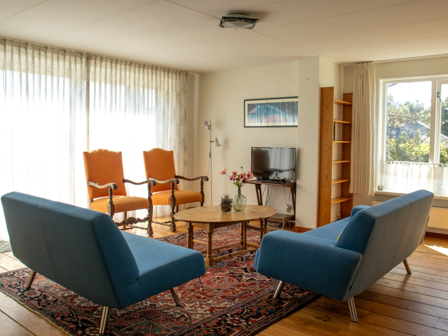 Beautifully situated country house in the dunes between the villages of Nes and Buren. Within walking distance of the beach. This spacious house is suitable for up to 8 people. You will experience the ultimate holiday feeling of the Wadden island of Ameland here. The house has an entrance with bathroom and separate toilet. The stairs to the upper floor are in the hall. There are 3 spacious bedrooms on the first floor. The 4th bedroom is on the ground floor. The living room has an open kitchen. The south-facing terrace is accessible via sliding doors. A washing machine, dryer and dishwasher are available in the utility room. There is a spacious parking space at the front of the house. At the rear, a dune path leads to the beach.
