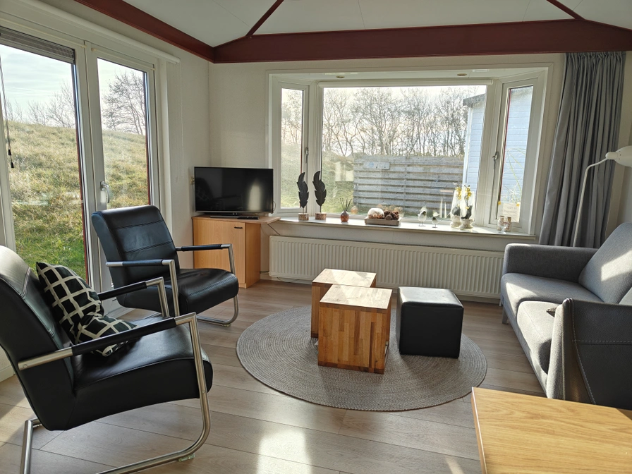 Enjoy ultimate quietude in our chalet. Completely unwind between the dunes where the sound of the sea can be heard from the terrace. Around the chalet you can often spot rabbits and pheasants foraging. The chalet is located on Klein Vaarwater, the most complete holiday park on Ameland with a supermarket, restaurant, snack bar and many sports facilities, such as tennis and paddle courts, a fitness studio, midget golf, pool tables and bowling alleys. When staying in our chalet you can use the indoor swimming pool for free. In addition, there is a indoor playground for the little ones and entertainment in almost all holiday periods. See Time is located within walking distance of the North Sea beach and within cycling distance of the cozy village of Nes. The chalet is spacious, fully equipped and contemporary in design. Outside is a large terrace with lots of privacy, garden furniture and a sunshade. In the storage room there is a washing machine and three bicycles that you can use for free.