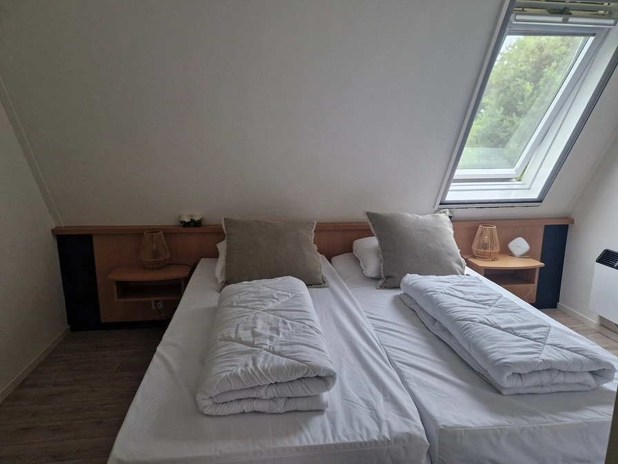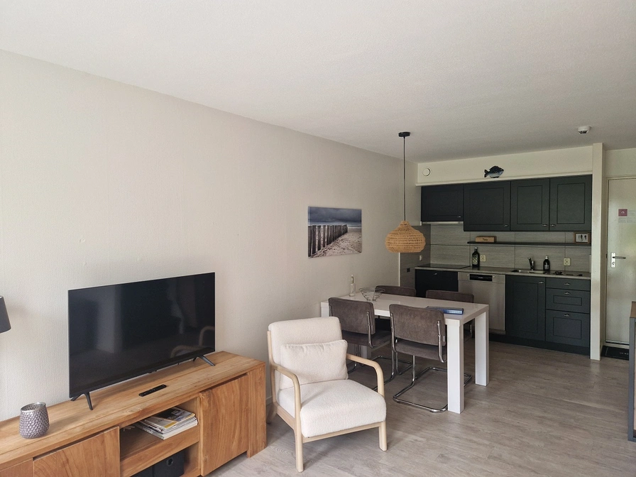 Strand 104 is the most conveniently located apartment on the ground floor of the Amelander Kaap complex. The apartment is fully equipped. A dishwasher and a coffee bar and luxury TV with Netflix. The terrace is located on the sunny west side, you can walk straight into the green grounds of the resort. Your children can run around or play carefree, no traffic or crowds. Strand 104 is close to the village, forest and the beach and the beautiful well-known lighthouse of Ameland. The golf course is 5 minutes from your apartment. The apartment is equipped with a high chair and cot. Your dog is welcome. You can also use the indoor swimming pool and other facilities such as sauna and tennis court for free. There is a restaurant in the complex and you can also use the breakfast service. The complex has a laundry where you can wash and dry.