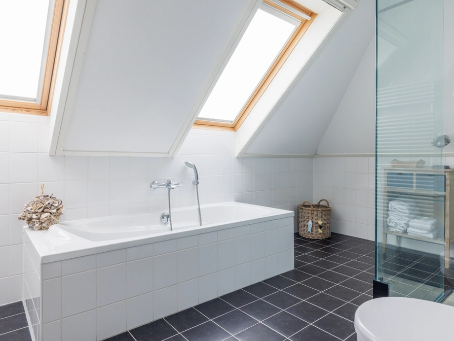 The villa is equipped with TV, patio doors to the spacious terrace with privacy, wind screen and unobstructed views. You enter a spacious entrance and find a utility room with washing machine and dryer. Downstairs is a toilet, a bedroom with 2 box-spring beds, a shower and sink. The spacious and attractive living room with open kitchen and dining area offers unobstructed views of the nature reserve. The kitchen is equipped with a dishwasher, coffee machine, extractor hood, fridge-freezer and a combination microwave. Upstairs there are 2 spacious bedrooms, both with 2 box-spring beds and a wardrobe, one bedroom has a TV. Furthermore, on the upper floor there is a luxurious spacious bathroom with a separate shower, bath, sink and a toilet.