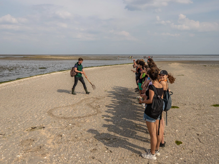 Mudflat excursions with Natuurcentrum Ameland; that is enjoyment, experience, and discovery. Anyone visiting Ameland really must venture out onto the Wadden Sea. It is a unique and fascinating nature reserve that holds UNESCO World Heritage status for good reason. Under the guidance of an experienced Wadden Sea guide, you will discover all the wonders the Wadden area holds. At the Wadden Sea between Ballum and Hollum, you will receive an introduction to large tidal flats, shell species such as mussels and cockles, birds, and the Wadden Sea food web. Wad Ballum is highly suitable for a complete tour through multiple biotopes and for viewing this piece of special heritage! The regular Wadden Sea excursions offered by Natuurcentrum Ameland are suitable for everyone. The duration is 1.5 hours. This tour is conducted in Dutch. Pets are not allowed on this tour! Groups of 10 or more people can book the above activity with their own guide. Please contact the Natuurcentrum for this.