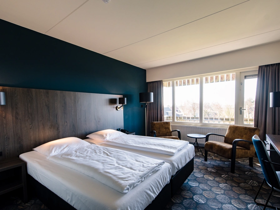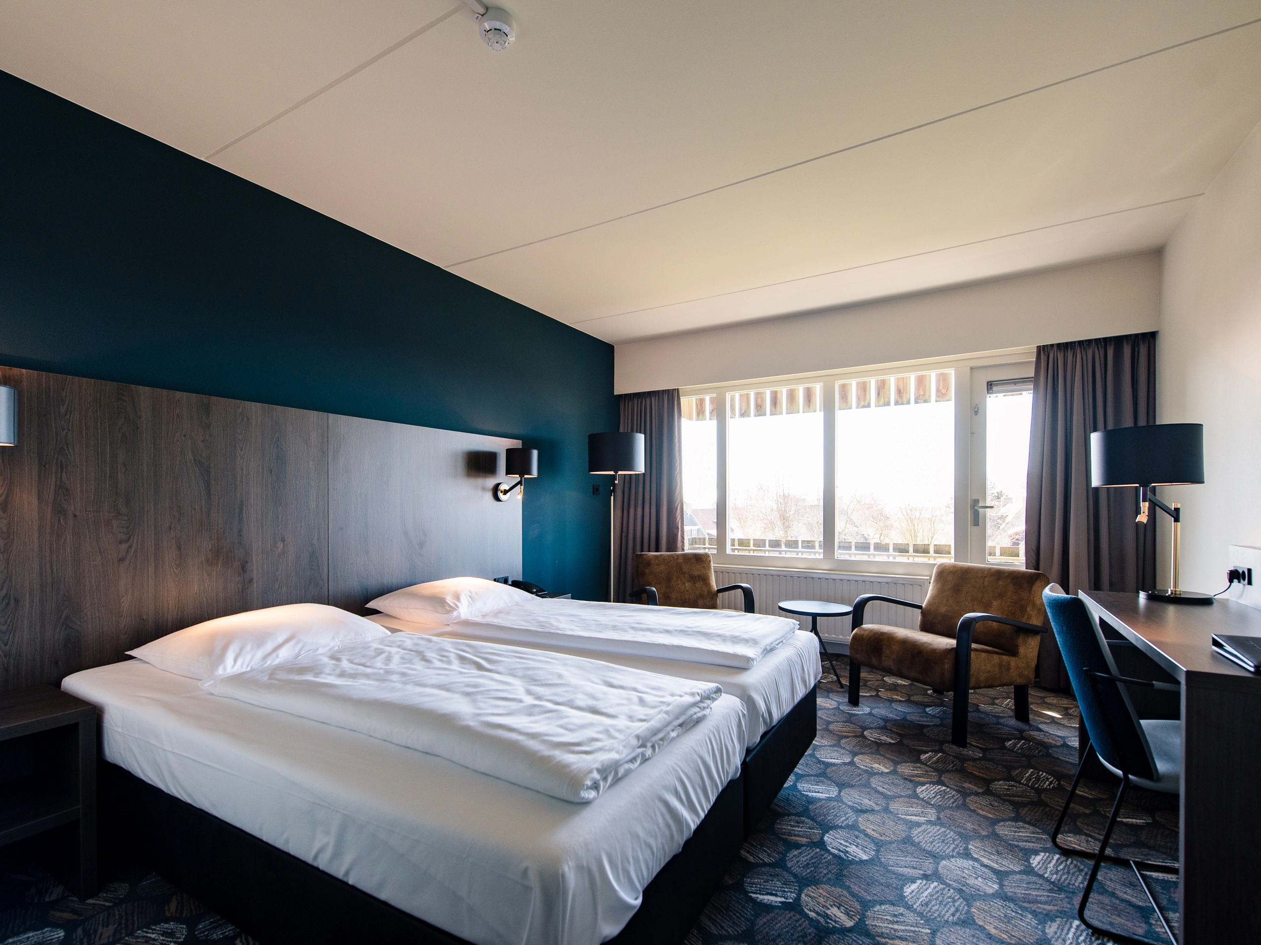 Elke kamer biedt maximaal comfort. U verblijft in een verzorgde hotelkamer, compleet en comfortabel ingericht met douche, toilet, flatscreen tv, telefoon, koelkastje, föhn, koffie- en theefaciliteiten. Vanzelfsprekend kan er nog een kinderbed of extra bed bij geplaatst worden. De zonnige kant van het Hotel Mooi weer? Alle kamers liggen aan de zonzijde. Al heel snel kunt u op een heerlijk beschut balkon genieten van uw rust en vrijheid. Vanaf vrijwel alle balkons kijkt u prachtig uit op onze fraai aangelegde tuin, terwijl de hoogste verdieping uitzicht heeft over de Waddenzee en de altijd spectaculaire luchten daarboven.