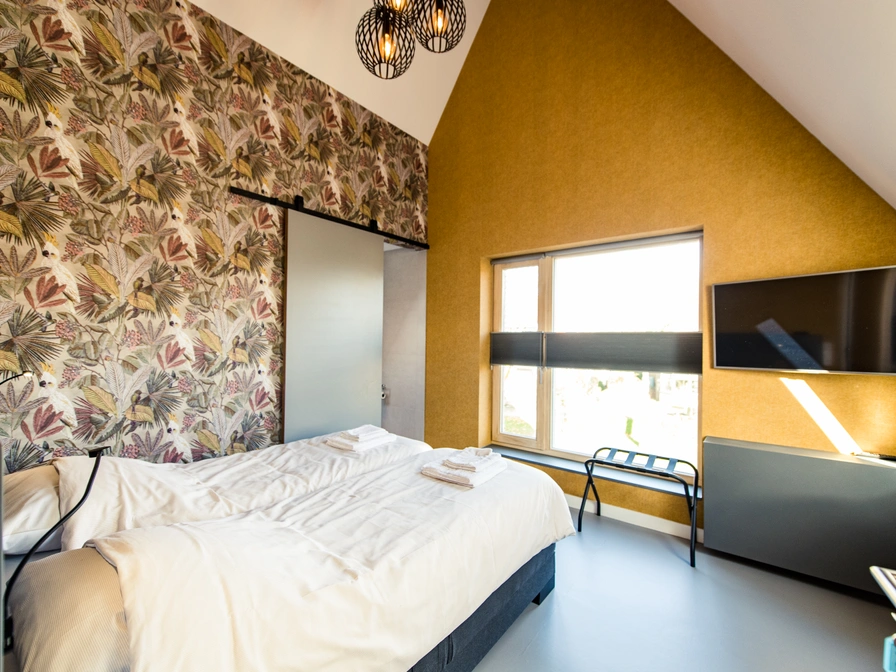 Duurzaam verblijf met luxe bed, regendouche en moderne inrichting