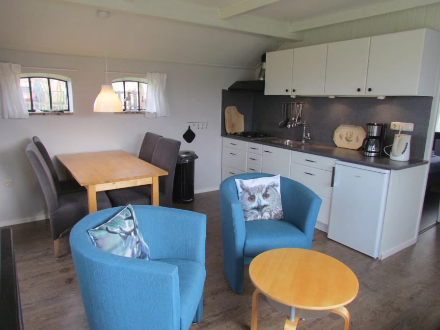 De vrijstaande bungalow Calimero staat in het dorp Ballum, is geschikt voor vier personen en heeft een terras met een tuin en met een eigen toegang vanaf de weg. Voor uw auto is een parkeerplaats naast de bungalow. Deze woning is zeer geschikt voor twee volwassenen met een of twee kinderen. Calimero staat aan de rand van het dorp helemaal achter op ons terrein met een fraai uitzicht over de weilanden richting vuurtoren. De bungalow heeft een terras op het zuiden en de westzijde, een kamer met keuken en eethoek en een zithoek met openhaard. Er zijn twee slaapkamers, waarvan één met twee boxsprings en één met een stapelbed. Vanuit de hal komt u in de badkamer met douche, toilet en wastafel. Er is cv en uiteraard wifi, een flatscreen, dvd-speler en een midiset met cd-speler. Dekbedden zijn aanwezig. Het bedlinnen kunt u zelf meenemen of erbij huren. Voor de (verstelbare) tuinstoelen zijn er kussens en er is een parasol. Een kinderbed en een kinderstoel zijn aanwezig, tevens zijn er kinderzitjes voor op de fietsen. In de berging zijn twee damesfietsen (met versnelling).Ook is er een oplaadpunt voor de e-bike.