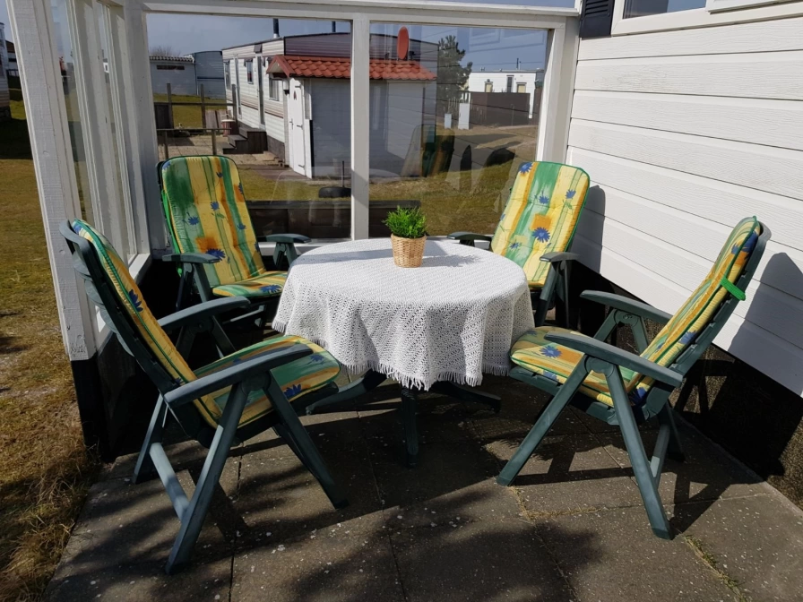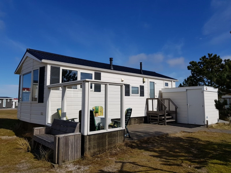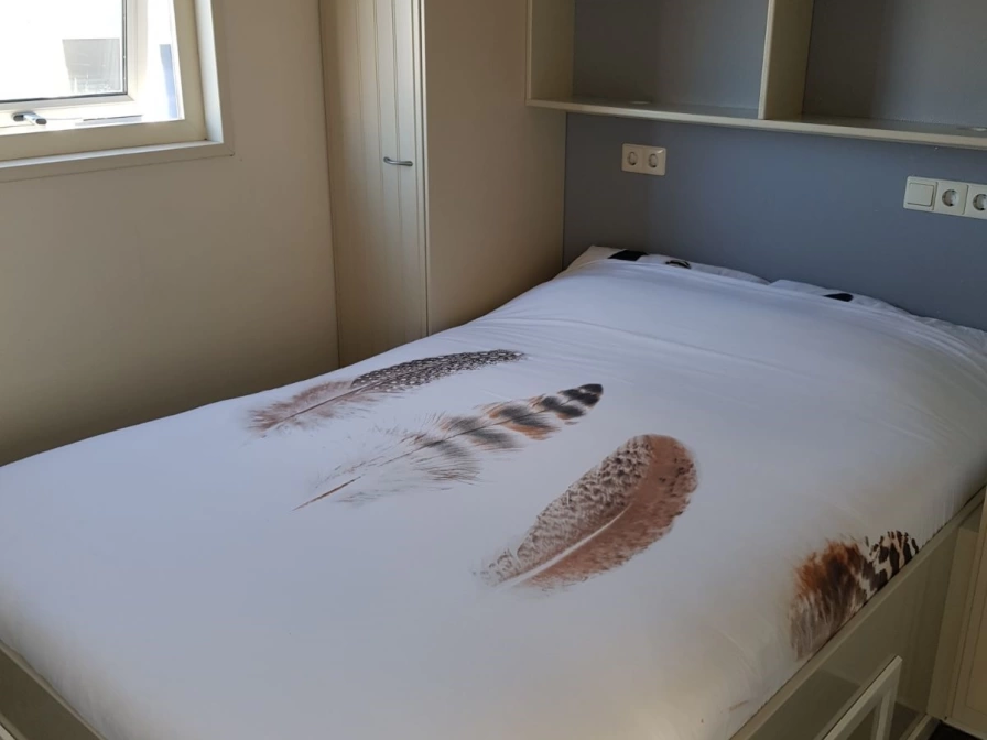 De stacaravan is modern en gezellig ingericht met een woonkamer met losse meubelen, TV, verwarming, rookmelder etc. De keuken is voorzien van een 4-pits gasfornuis met afzuigkap, koelkast met vriezer, magnetron, koffiezetapparaat, waterkoker en alle benodigde kookgerei en servies. De eettafel biedt plaats aan 5 personen en er is een kinderstoel. Slaapkamer 1 heeft een tweepersoonsbed (140×200), één dekbed en kussens. Slaapkamer 2 heeft een stapelbed en een 3e bed (70×200), dus minder geschikt voor volwassenen maar wel mogelijk, dekbedden en kussens. De badkamer is met wastafel, douchecabine en toilet uitgerust. Buiten vindt u een afgeschermd terras met meubilair en een parasol. U kunt een klein slaaptentje voor max. 2 personen bijplaatsen, kost ongeveer 4 euro per nacht. In het schuurtje bevinden zich een vrieskast, een bolderkar een parasol en een kast met handgereedschap. Wij wensen u een fijne vakantie en plezierig verblijf op het prachtige Ameland.
