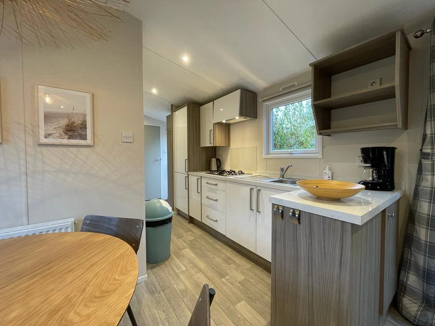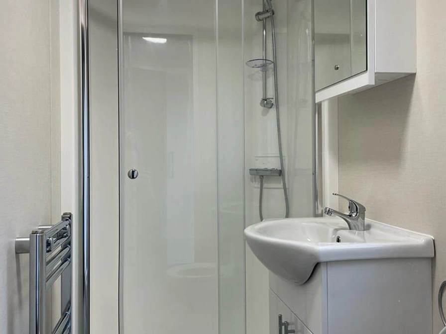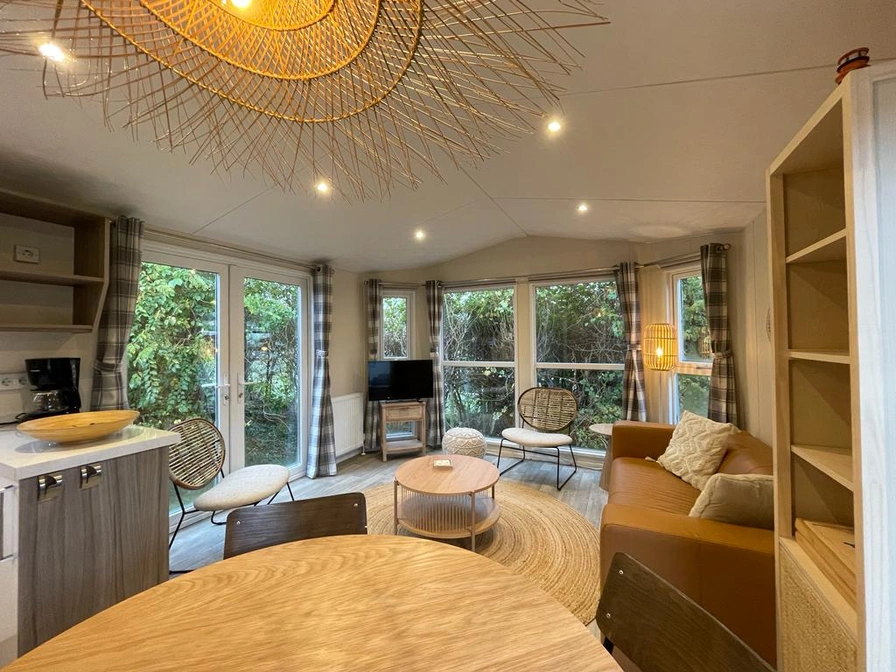Ons nieuwe, geïsoleerde en modern ingerichte Nordik chalet van 10 x 3,70 m heeft twee slaapkamers. In de ene kamer staat een tweepersoonsbed in de andere twee losse éénpersoonsbedden. Het chalet wordt verwarmd middels centrale verwarming. De televisie kan verbinding maken met internet. Het is daarom bijvoorbeeld ook mogelijk om Netflix of Videoland te kijken via een eigen account. De keuken is voorzien van een aanrecht met gasfornuis, afzuigkap en een koel- vriescombinatie. De badkamer is met toilet, wastafel en een ruime douchecabine ingericht.