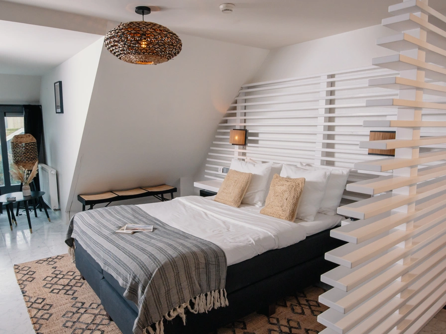 Het Nobel Hotel is een designhotel met de warme gastvrijheid van het familiebedrijf. Dé plek waar levensgenieters zich thuis voelen op Ameland. Het hotel in Ballum is een perfecte uitvalsbasis om Ameland te verkennen, want er is genoeg te doen! Nobel Hotel Ameland is modern en sfeervol ingericht en telt 19 kamers, een café en een restaurant. Zo is er de hele dag door een plek waar je bij ons verblijven. Neem plaats bij de gezellige haard die altijd brand voor een kop goede koffie. Of in het sfeervolle restaurant voor een heerlijke lunch of diner. Om 17:00 uur is het borreltijd in het café. Dat merk je vanzelf als je de bulderende lach van Barend en Wim vanachter de toog hoort. Want het hotel is strak en modern ingericht, maar koud is het er allerminst. De gastvrijheid van de familie voel je overal in het bedrijf. Zo voel je je al snel thuis. De heerlijke kamers van hotel Nobel Maak voor een overnachting bij Hotel Nobel je keuze uit één van de verschillende kamertypes. Je kunt kiezen voor de comfortkamer begane grond of comfortkamer 1e etage. Wil je meer luxe ga dan voor de comfortkamer plus waar je de beschikking hebt over een bubbelbad. In de loggia en loggia suite heb je naast een bubbelbad ook een loungebank en een apart zitje in je kamer. Kom je met een groter gezelschap (max. 12 personen) of wil je meer privacy en een sauna kies dan voor de kerksuites van Nobel. Alle 19 kamers zijn modern en stijlvol ingericht en voorzien van een 2-persoons Nilson boxspringbed met topmatras. De kamers zijn voorzien van een koelkastje, flatscreen tv, kluisje, ruime kledingkast, telefoon en je kunt er koffie en thee zetten (iLLy Y3 Iperespresso). Natuurlijk is er ook gratis WiFi op de kamers. In het hotel is geen lift aanwezig, de kamers op de 1e etage zijn bereikbaar via de trap.