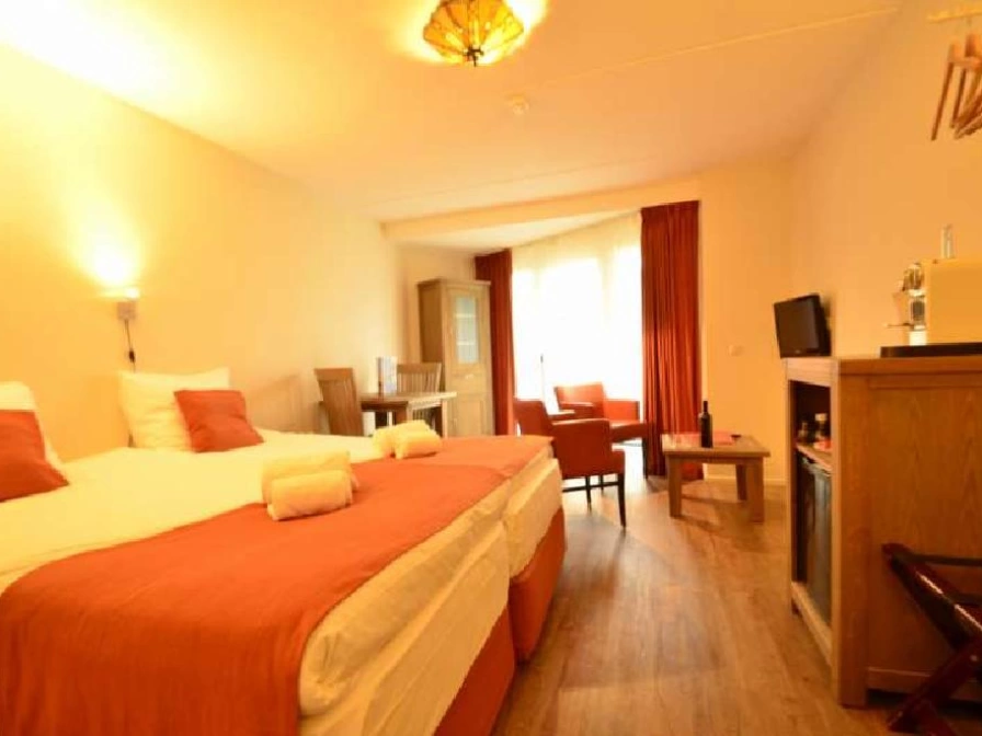 Deze kamers van 25m² hebben een tweepersoonsbed of 2 eenpersoonsbedden en zijn gelegen op de begane grond. De deluxe badkamers zijn voorzien van een zonnedouche (zonnebank onder de douche) en een regendouche. De kamers hebben een eigen terrasje en een zitgedeelte. Iedere morgen wordt voor u een uitgebreide ontijbtmand klaargezet op uw kamer!