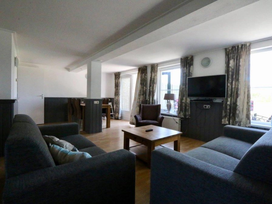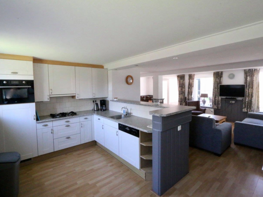 De 6-persoons woning heeft een woonkamer (ongeveer 30m²) en woonkeuken. Vanuit de woonkamer kunt u via de openslaande deuren het terras bereiken. In de woning zijn drie slaapkamers. Alle op de bovenverdieping. Één slaapkamer heeft een tweepersoonsbed, twee slaapkamer hebben elk twee eenpersoonsbedden. Op de bovenverdieping bevindt zich de badkamer met ligbad, douche en toilet. Beneden bevindt zich een tweede toilet. De keuken is voorzien van een koelkast met vriesvak, magnetron, oven en afwasmachine. In de woonkamer is een tv, video, cd-speler en een radio.