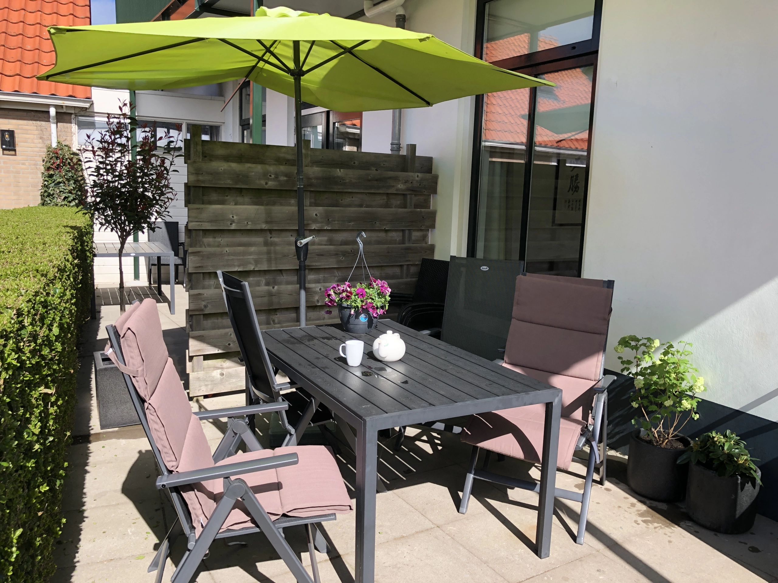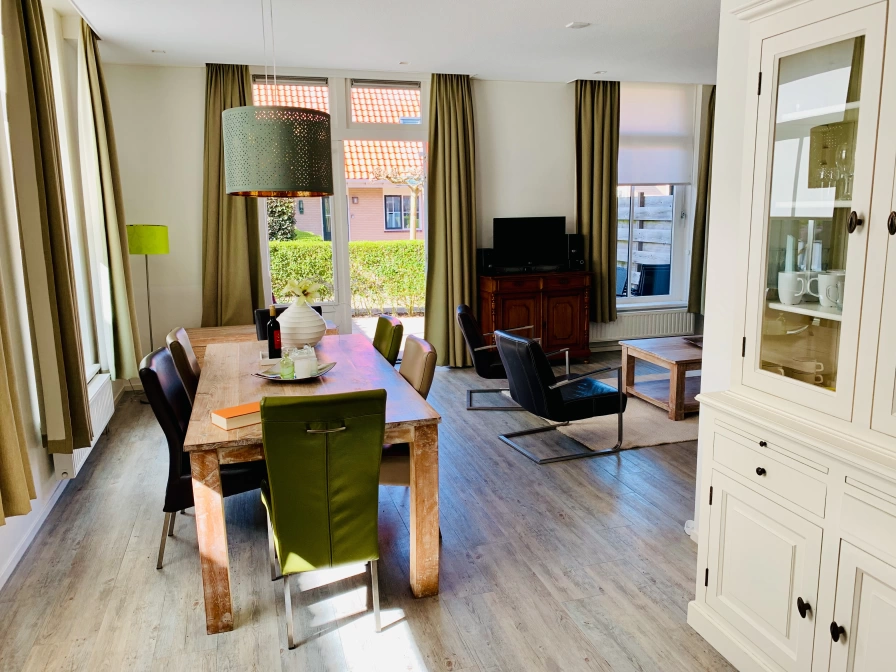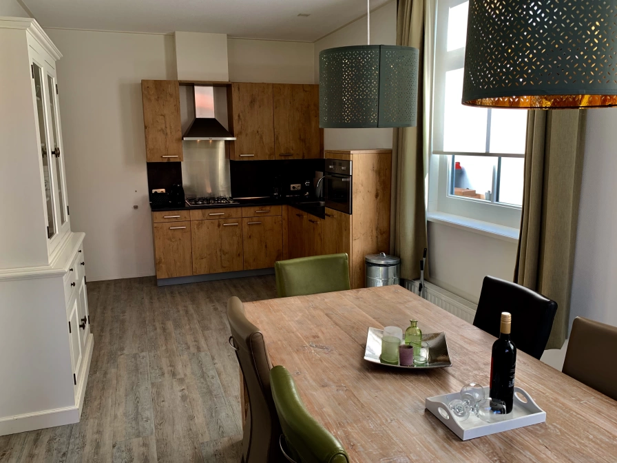 Ons appartement van 88 m² bevindt zich op de benedenverdieping, met twee slaapkamers voorzien van 4 heerlijke box spring bedden, een ruime hal met badkamer en ligbad, inloop douche en een apart toilet. Het appartement heeft een luxe keuken ( 4-pits gaskookplaat, oven, magnetron, afzuigkap en afwasmachine, koelkast met vriesvak) en een zonnige eetkamer met annex een salon met grote raampartijen (flat screen tv, dvd/cd speler, radio en wifi). Er is een wasmachine en droger voor de gasten van de Eerste Stuiver. Via de openslaande deuren in de salon heeft toegang tot een heerlijk terras waar u het overgrote deel van de dag van de zon kunt genieten. Dankzij de ligging zijn privacy en rust gegarandeerd. Een ideale plek om van een heerlijk verblijf op het mooie Waddeneiland Ameland te genieten.