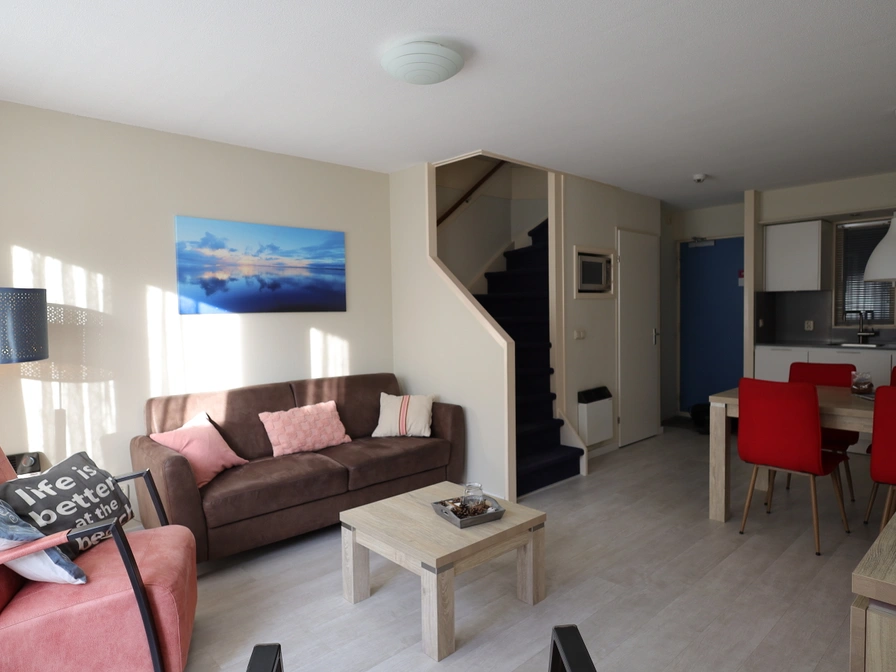 Kom genieten in Kaap 70! Een comfortabel 3-kamerappartement voor 2-4 personen. Het gerenoveerde appartement op de begane grond beschikt over een woonkamer met open keuken. Via de schuifdeur heeft u toegang tot het terras /tuin, gericht op het westen. Op de 1e verdieping bevinden zich 2 slaapkamers met elk 2 1-persoonsbedden en de badkamer met inloopdouche (regendouche), wastafel en toilet.