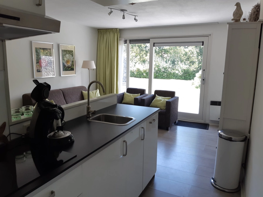 Het comfortabele 2-kamerappartement is gelegen op de begane grond en beschikt over een ruime woonkamer met slaapbank. De keuken is voorzien van een Senseo, koffiezetapparaat, waterkoker, vaatwasser en combi-oven. Daarnaast beschikt het appartement over 1 slaapkamer met twee 1 persoons boxspringbedden. De schuifpui geeft direct toegang tot het terras en tuin op het westen. Het terras heeft comfortabele tuinstoelen. Het is een fijne uitvalsbasis om het eiland te ontdekken.