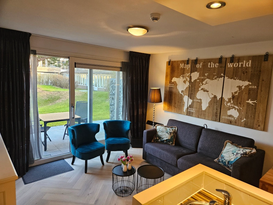 In onze appartementen kunt u heerlijk ontspannen genieten van een vakantie of (lang) weekend op Ameland. De appartementen zijn allemaal recent ingericht met nieuwe meubels. Ook beschikken ze over een nieuwe keuken met vaatwasser en Nespresso koffiezetter zodat u geniet van het comfort dat u op vakantie verdient. Appartement Kapershut 79 is een 2-kamer appartement, geschikt voor maximaal 4 personen. Dit 2-kamerappartement is sfeervol ingericht. Het omvat een woonkamer met slaapbank, SMART tv en open keuken, een slaapkamer met 2-persoonsbed, een badkamer met ligbad en een terras. Het appartement bevindt zich op de begane grond en is geheel gelijkvloers.