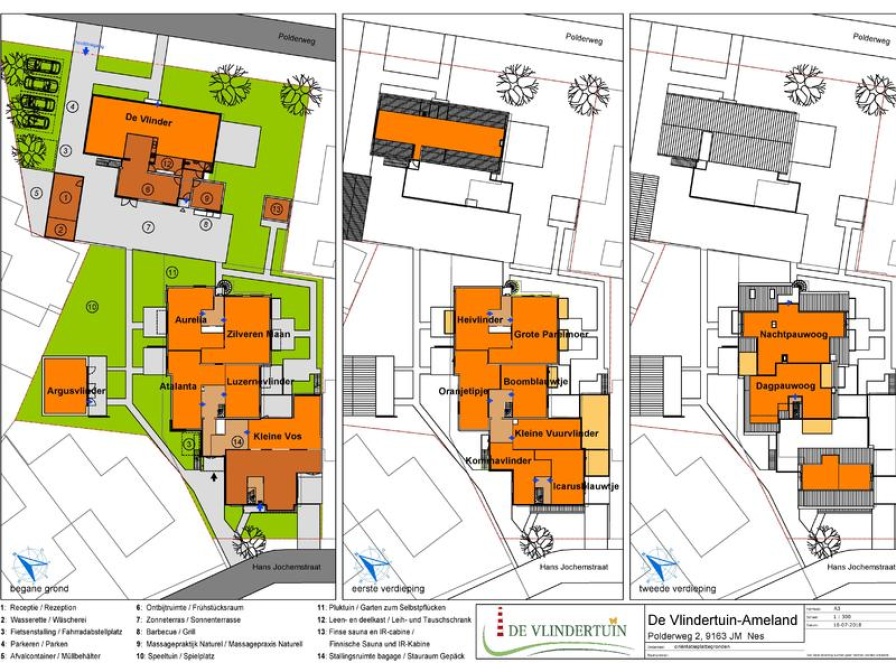 Onze vakantiewoningen liggen aan de rand van het dorp Nes dat centraal gelegen is op Ameland. Het centrum van Nes is op enkele minuten loopafstand van de veerhaven, de warme bakker, de sfeervolle restaurants en pittoreske winkeltjes. De Vlindertuin is gelegen aan een rustig hof en beschikt over een ruime binnentuin met speeltoestellen, ideaal om te genieten van een goed boek of om lekker te relaxen. Het bos, wad en strand en recreatiegebied de Vleyen is vlakbij, voor u en de kinderen is er volop vertier. Nabij onze ingang aan de Polderweg 2 is voldoende parkeergelegenheid.