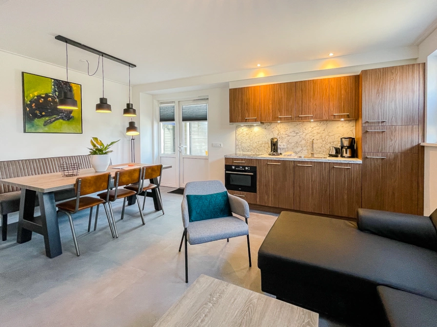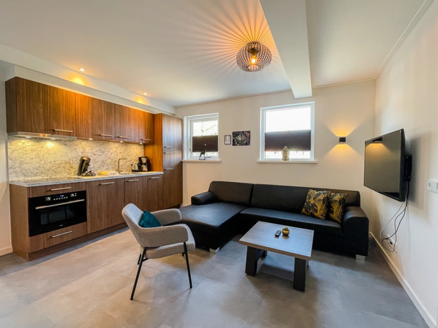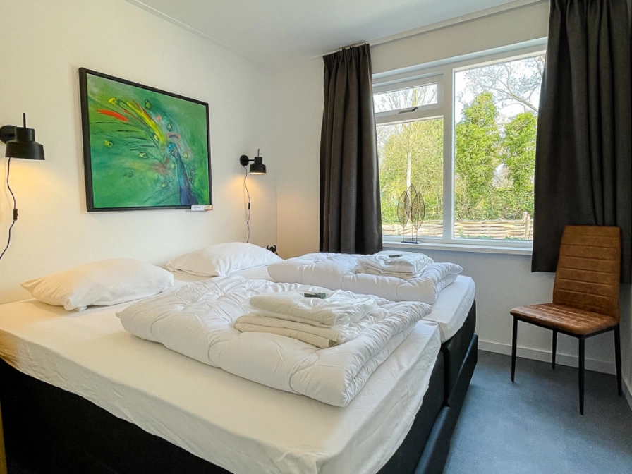Koningspage is een zespersoons appartement. Het appartement is gelegen op de begane grond. Er is een moderne inrichting en de grote keuken is van alle benodigdheden voorzien: vaatwasmachine, vriesvak en magnetronoven. Er is een aparte WC in het appartement. De badkamer bevat een bad, een aparte douche en een tweede WC. Er zijn twee slaapkamers. Eén met twee bedden en in de andere slaapkamer staan twee stapelbedden. Het appartement heeft een royaal terras. Om het verblijf goed af te stemmen op uw wensen, zijn er verschillende opties bij te boeken: 1) Ontbijt: In de ontbijtzaal, binnentuin of eigen terras kun je genieten van het onbeperkte ontbijtbuffet. Voor €14,50 p.p (kinderen 0 t/m 3 jaar kosteloos en 4 t/m 12 jaar €7,50), krijg je echt een vakantiegevoel met het uitgebreide ontbijtbuffet met lekkere streekproducten. We kunnen het ontbijt afstemmen op jouw dieetwensen. Van 8.15 uur tot 10.30 uur staan we voor je klaar met warme broodjes en diverse lekkernijen. 2) Housekeeping gedurende de gehele verblijfperiode: 30 minuten per dag. Vloer stofzuigen en dweilen, bedden fatsoeneren, vuilniszakken legen, sanitair reinigen, tafels afnemen, 1 wc rol, 1 vaatwastablet, 2 sets handdoeken. Op dag van aankomst niet, op dag van vertrek geen nieuwe handdoeken maar het lazy checkout pakket. U verlaat zonder schoonmaakwerk het appartement. Bedden worden voor u afgehaald, koelkast geleegd, stofzuigen, vuilnis wegbrengen, vaatwasser legen. Wilt u een opgemaakt bed bij aankomst, vink dan deze optie aan. Kosten: €45,- per dag. 3) Lazy checkout: Voor het uitchecken is de regel dat u het appartement opruimt (zie ook de regels voor het uitchecken). Bent u niet in de gelegenheid om dit te doen, boekt u dan de lazy check out. Wij zorgen er in dat geval voor dat uw bedden worden afgehaald, het vuilnis weggebracht en de vaat gedaan. U hoeft zelf alleen uw koffer terug mee te nemen. Kosten: €37,50. 4) Welkomstpakket: Rode wijn, vruchtensap, diverse nootjes en kaas. Kosten: €30,-. 5) Opgemaakte bedden bij aankomst: Kosten €9,50 per bed. 6) Kinderbedje met bedlinnen. Kosten €10,- per bedje voor de hele verblijfperiode. 7) Kinderstoel: Kosteloos.