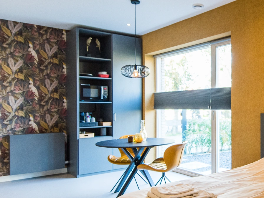 Breeze 1 is een ruime en stijlvolle eco-loft voor 2 personen, gelegen op de begane grond aan de rand van het dorp Hollum. Dankzij de grotere opzet en de gelijkvloerse indeling is deze loft extra comfortabel en gemakkelijk toegankelijk. De loft is modern ingericht en voorzien van een luxe boxspringbed, Smart-TV, Sonos, een comfortabele eethoek, een moderne badkamer met regendouche. Tevens een koelkast, serviesgoed, koffie en thee, waterkoker en een Nespresso-machine. Grote ramen zorgen voor veel licht en een fijne verbinding met buiten. Breeze 1 is duurzaam gebouwd met gebruik van zonne-energie en circulaire materialen, waardoor je geniet van luxe met respect voor de natuur. Strand, duinen, dorp en vuurtoren liggen op loopafstand. Breeze 1 is ideaal voor gasten die ruimte, comfort en duurzaamheid willen combineren op Ameland.