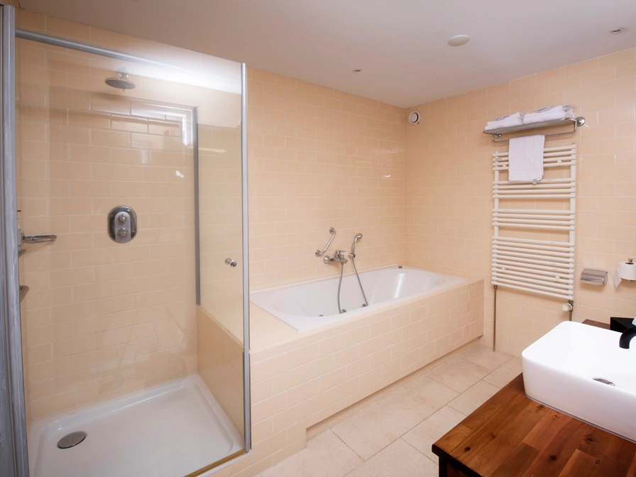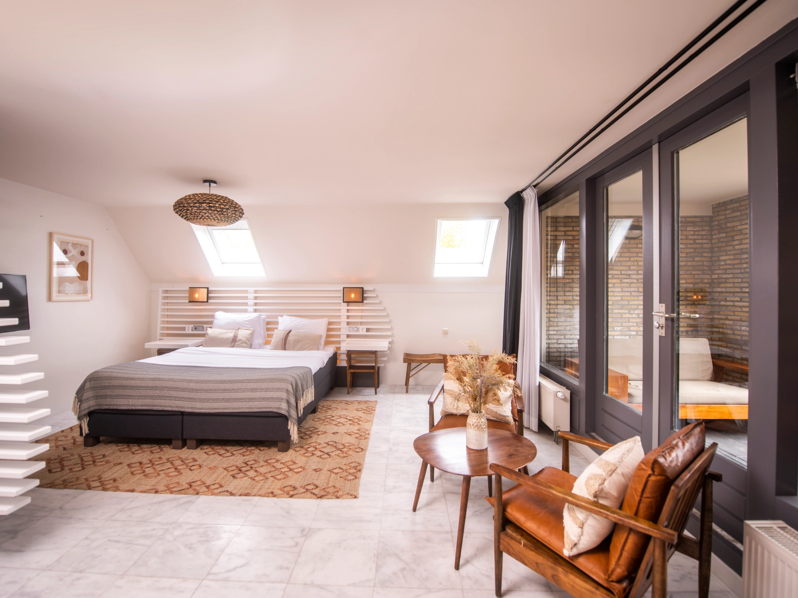 Onze prachtige Loggia Suite is modern en van alle gemakken voorzien. Als extra hebben deze Loggia Suites een ruim overdekt inpandig balkon. Hier is het niet alleen overdag heerlijk vertoeven, maar ook ‘s avond. Je slaapt op een 2-persoons Nilson boxspringbed met topmatras. Verder is er een sofa met hocker. Maar ook een zithoekje, koelkastje en de mogelijkheid om koffie of thee te zetten (iLLY Y3 Iperepresso). Daarnaast is er een flatscreen tv, kluisje en ruime kledingkast aanwezig. De ruime badkamer heeft een bubbelbad, maar tevens een aparte douche, een toilet, föhn en badslippers.