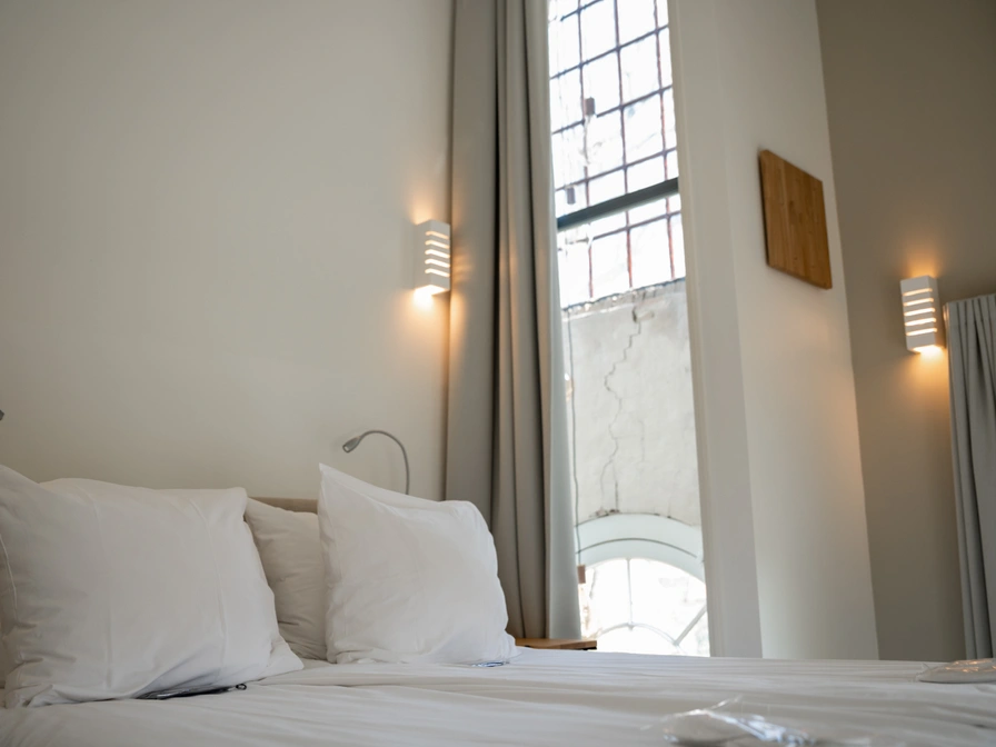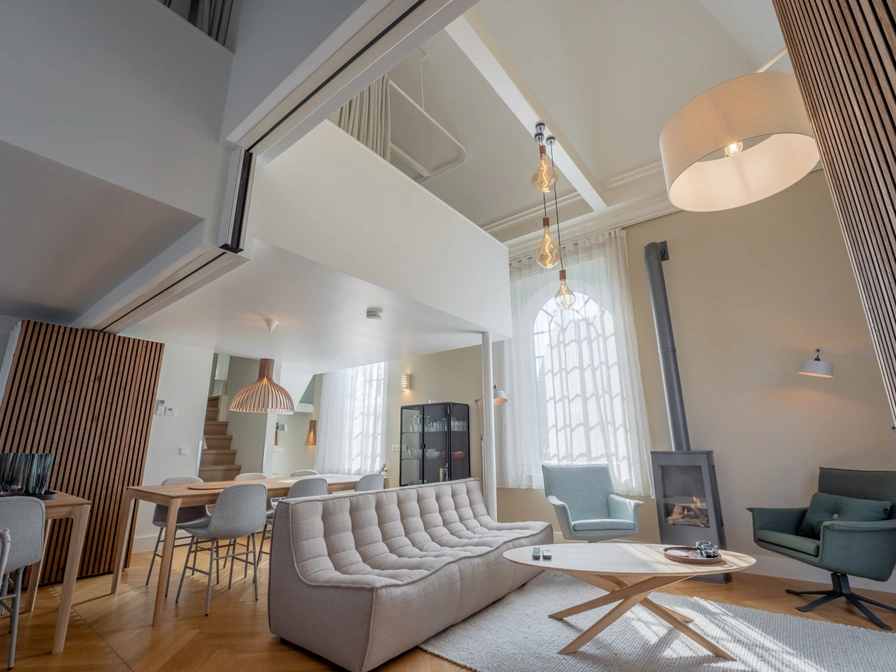 Hotel Nobel heeft een unieke dependance in de kerk van Ballum. Deze kerk is schuin tegenover het hotel en is onlangs omgebouwd tot een tweetal 6-persoons appartementen. De uitstraling is luxe, modern en designDe kerk is los van de bestaande buitengevel totaal verbouwd, waardoor de kerk zijn authenticiteit behoud. Er wordt veel met glas gewerkt in het interieur, zodat alle vertrekken met elkaar in verbinding staan. Dit zorgt voor een mooie verbondenheid tussen alle afzonderlijke ruimtes en hierdoor krijgen alle ruimtes, direct of indirect, daglicht. De kerk is over de lengte gesplitst in 2 verschillende appartementen, welke door een mobiele scheidingswand verbonden zijn. Er is een mogelijkheid om de kerk in zijn geheel af te huren door de scheidingwand te openen. Er ontstaat dan een appartement voor 12 personen.Aan de achterzijde kan men vanuit de verhoogde woonkamer van het uitzicht genieten en is er de mogelijkheid om via de vergrootte kozijnopening naar het buitenterrasje te gaan. Hieronder vind u een overzicht die onze kerk appartementen te bieden heeft. • Centrale ligging op 100 meter afstand van Nobel• Bijzonder design en hoogstaand kwalitatief interieur• Woonkamer met open keuken• Geen verborgen kosten, tarieven inclusief linnengoed, schoonmaakkosten enz• Mobiel scheidingswand. Mogelijkheid 6 tot 12 personen• Gratis draadloos internet• Samsung smart TV op alle kamers (met snelle internetverbinding)• Illy Francis X1 Espressomachine• Openhaard in beide appartementen• Bubbelbad in één appartement• Sauna in één appartement• Terrasje• Fietsverhuur• Huisdieren zijn niet toegestaan• Rookvrij• Mogelijkheid gebruik te maken van alle faciliteiten van Nobel Het zal een speciale ervaring zijn, slapen en verblijven in een voormalig kerkgebouw.